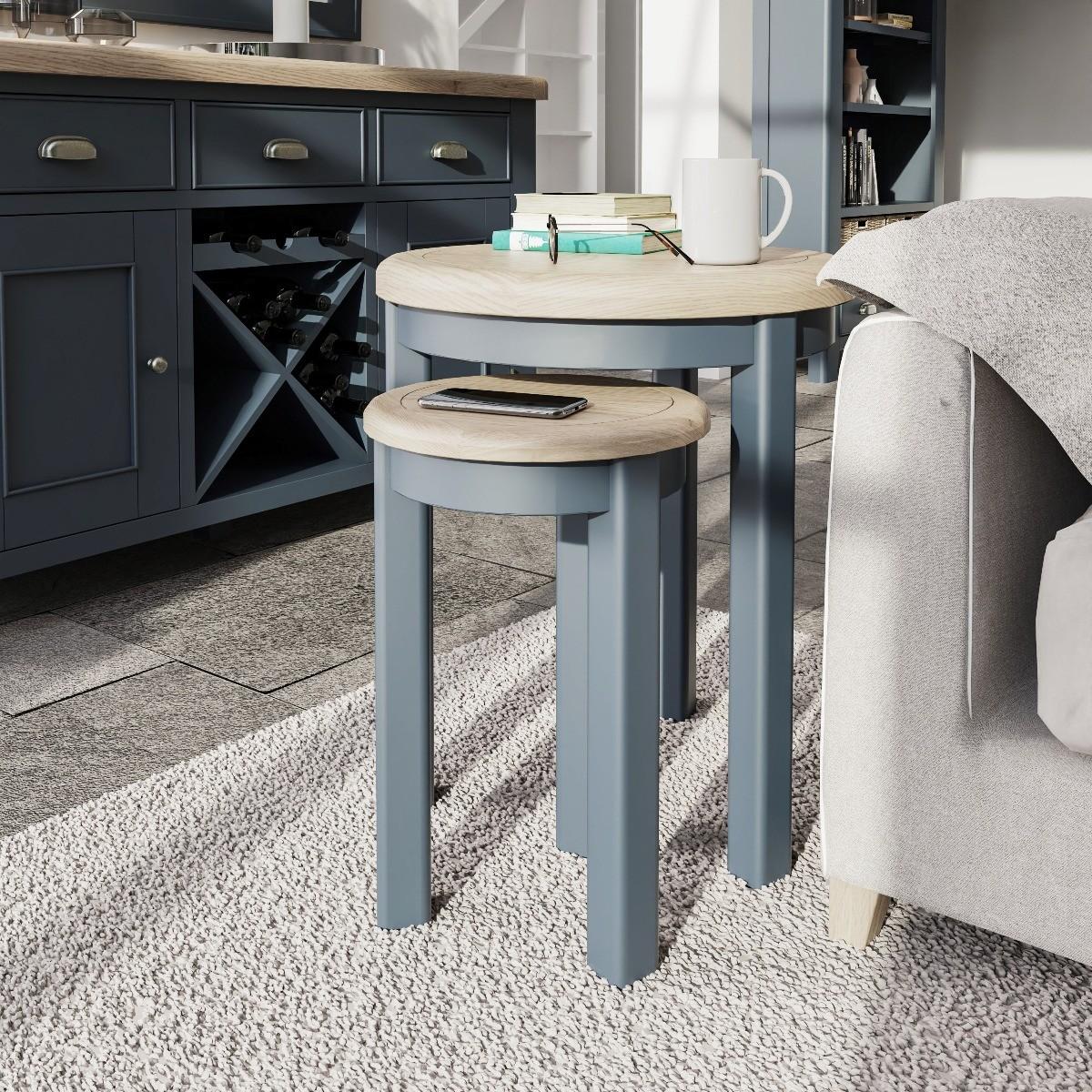 The gorgeous antique oak finish of the Scarlett collection looks stunning in both traditional and contemporary homes. Not just beautiful, but also robustly constructed from the durable combination of solid oak, pine, MDF with veneers. Made to last with chunky tops and gently rounded corners, these pieces are family favourites– stacking tables all ages love. Two stacking tables - pull out when needed. Crafted from oak, oak veneers, pine and MDFLovely antique oak finish. Solid tapered legs