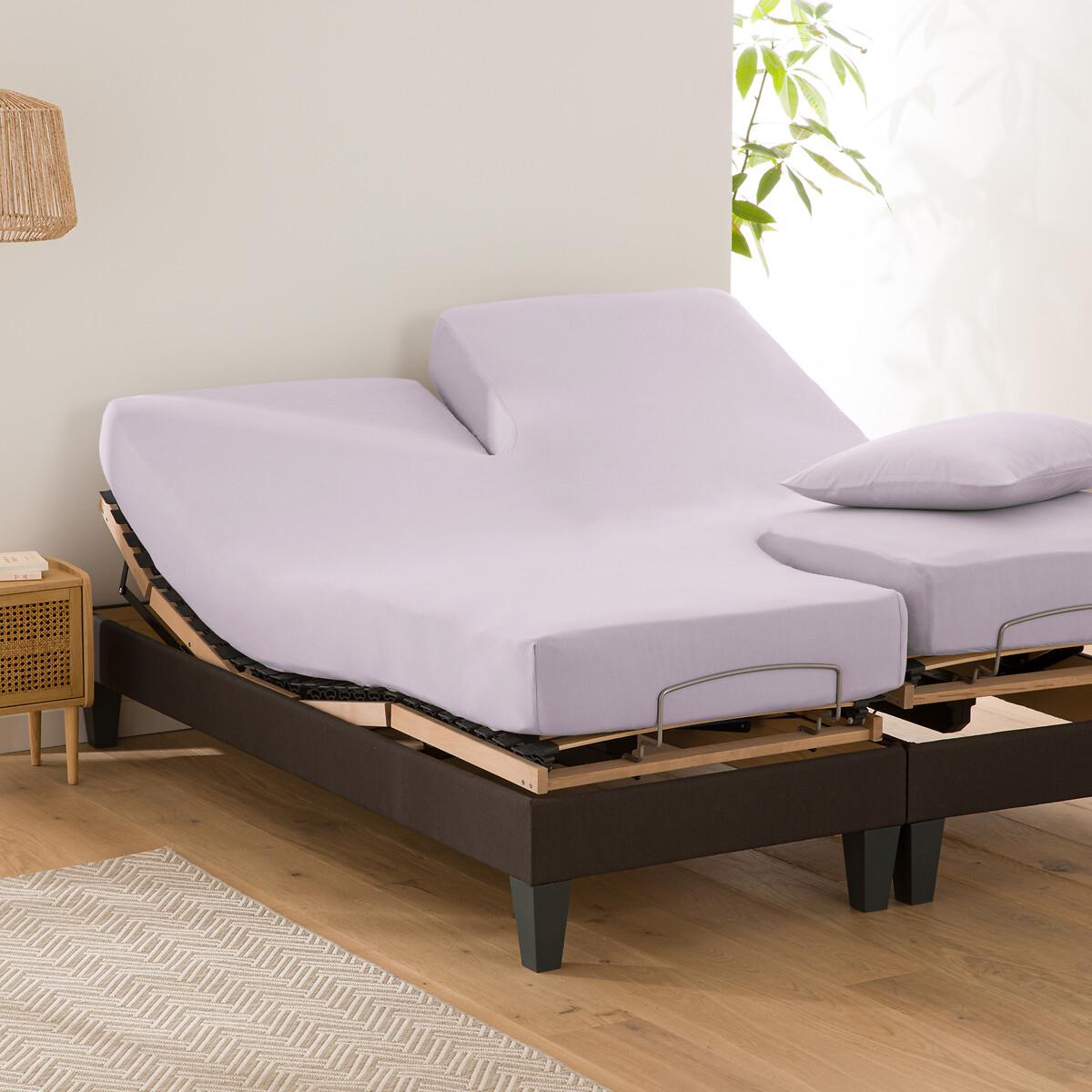 A fitted sheet for an articulated bed in pure cotton canvas. A superb range of current colours to mix at will with the Scenario pillowcases, duvet covers, fitted sheets and flat sheets..Cotton is part of our daily lives. We love it for its suppleness and softness. Easy Care, it is ideal for the beds of young and old alike!Product Details • 100% cotton • 144 thread count • For mattress height 25cm • For articulated beds. Designed for beds with adjustable head and foot : Double bed with adjoining mattresses with independent heads and feet • 4 elasticated corners Care Advice • Machine washable at 60°C • By washing your laundry at 40°C instead of 60°C, you limit energy consumption. Sizes • 140 x 190cm: Double • 160 x 200cm: King • 180 x 200cm: Super King • OEKO-TEX® Standard 100. Standard 100 certification by OEKO-TEX® tests textile products for harmful substances via an independent, international label.