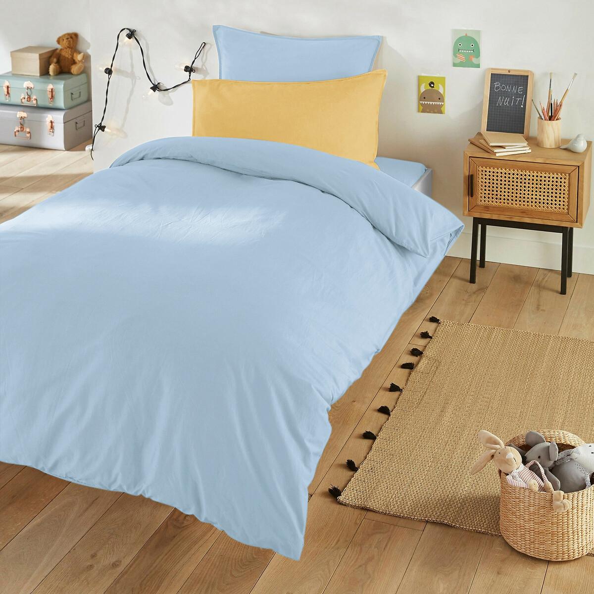 The Scenario child's washed cotton duvet cover. The washed cotton has been delicately bleached during its manufacture. Soft, supple and comfortable, it softens over time. Its slightly wrinkled appearance is incredibly on-trend, and it does not require ironing. A superb range of bed linens in very contemporary colours, you can mix and match items from our Scenario collection with plain or patterned pieces from our other ranges to express your own individual style.. Product Details • 100% cotton • 144 thread count • Straight buttoned hem Care Advice • Machine washable at 60°C • By washing your laundry at 40°C instead of 60°C, you limit energy consumption. Sizes • 140 x 200cm: Single • 200 x 200cm: Double • OEKO-TEX® Standard 100. Standard 100 certification by OEKO-TEX® tests textile products for harmful substances via an independent, international label.