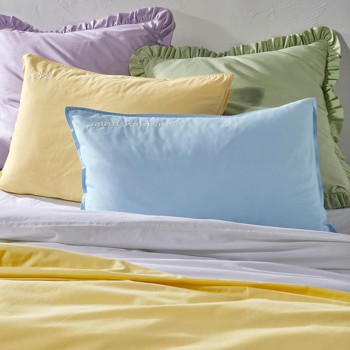 Washed cotton ruffled pillowcase. A superb range of very up-to-date colours, mix and match it with other bedding items to create your perfect look. The washed cotton has been delicately bleached during its manufacture. Soft, supple and comfortable, it softens over time. Its slightly wrinkled appearance is incredibly on-trend, and it does not require ironing. Product Details • 100% cotton • Washed cotton • frill : 5cm • 144 thread count. Care Advice • Machine washable at 60°C • By washing your laundry at 40°C instead of 60°C, you limit energy consumption. Sizes • 50 x 70cm: Rectangular pillowcase • 63 x 63cm: Square pillowcase • OEKO-TEX® Standard 100. Standard 100 certification by OEKO-TEX® tests textile products for harmful substances via an independent, international label.