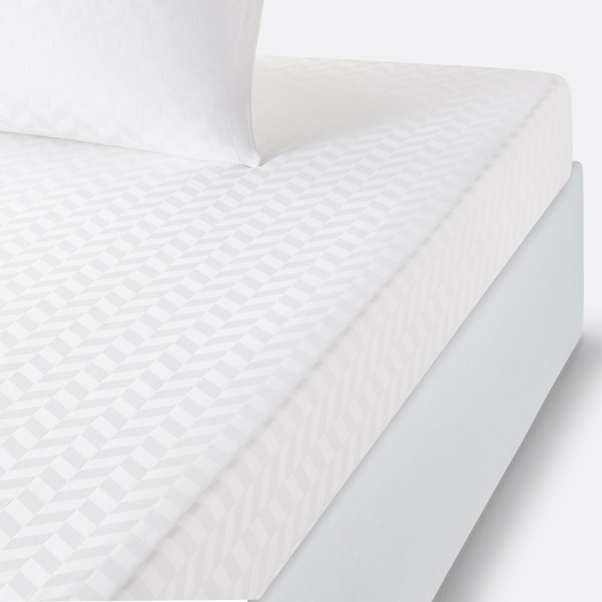 Elegance and softness. The chevron pattern cotton satin fitted sheet is as beautiful as it is easy to care for. It is available in different colours, to coordinate with your bed linen. Bedding by La Redoute Interiors. Cotton with an ultra tight weave, cotton satin has a silky and satin feel. Product Details • 100% cotton • Cotton satin • 300 Thread Count: The higher the thread count, the higher the quality of the weave • Flap height 30cm for thick mattresses • 4 elasticated corners Care Advice • Machine washable at 60°C • By washing your laundry at 40°C instead of 60°C, you limit energy consumption. Sizes • 90 x 190cm: Single • 140 x 190cm: Double • 160 x 200cm: King • 180 x 200cm: Super King • OEKO-TEX® Standard 100. Standard 100 certification by OEKO-TEX® tests textile products for harmful substances via an independent, international label.