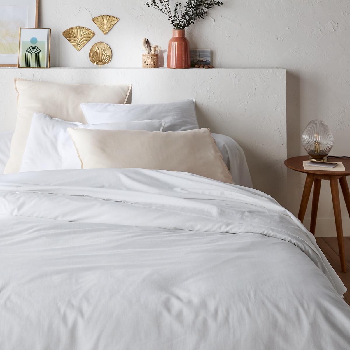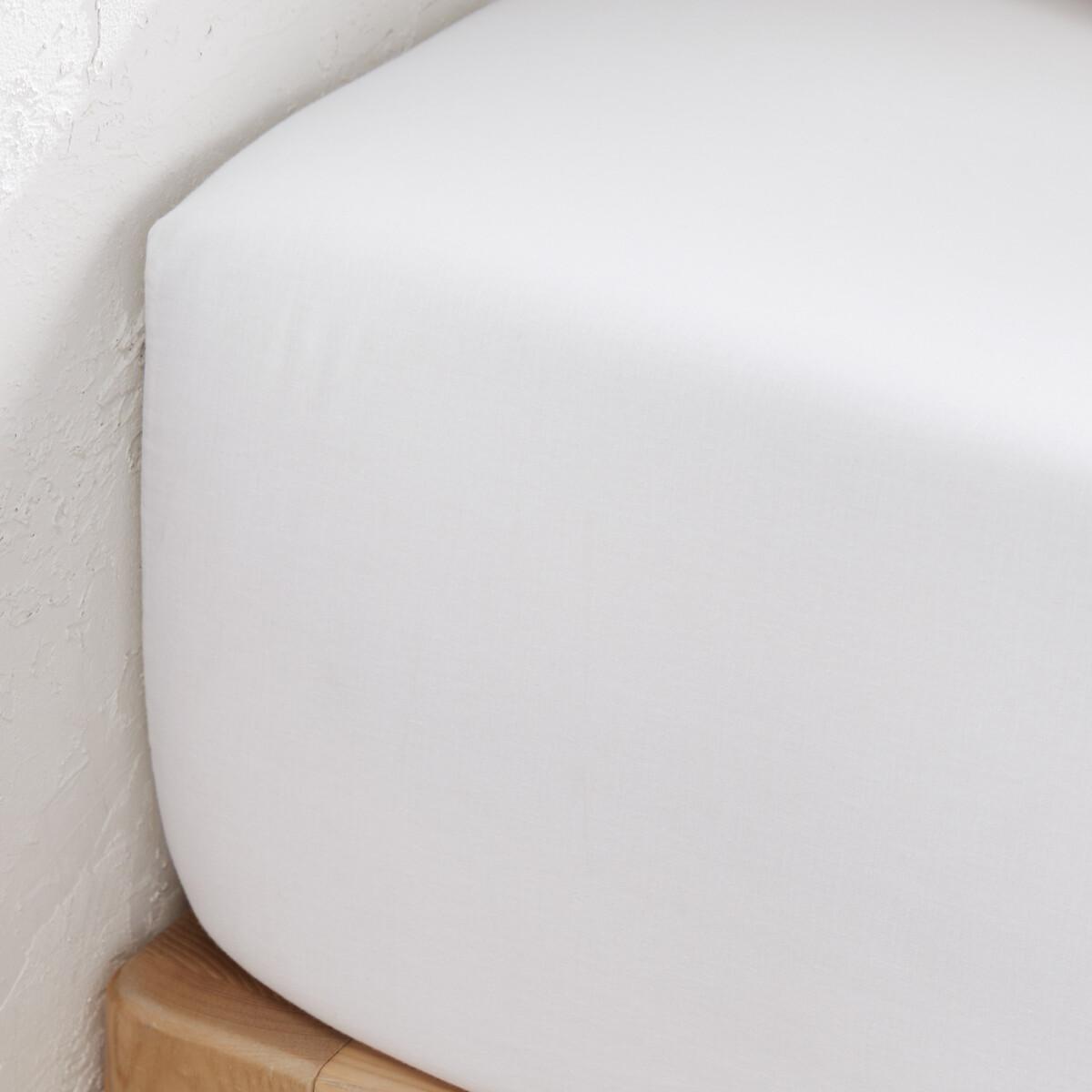 The Scenario washed cotton fitted sheet. The washed cotton has been delicately bleached during its manufacture. Soft, supple and comfortable, it softens over time. Its slightly wrinkled appearance is incredibly on-trend, and it does not require ironing. Team this bedding with other pieces from the range and create different combinations to keep things looking fresh. Product Details • 100% cotton • 144 thread count • Flap height 30cm for thick mattresses • 4 elasticated corners Care Advice • Machine washable at 60°C • By washing your laundry at 40°C instead of 60°C, you limit energy consumption. Sizes • 90 x 190cm: Single • 140 x 190cm: Double • 160 x 200cm: King • 180 x 200cm: Super King • OEKO-TEX® Standard 100. Standard 100 certification by OEKO-TEX® tests textile products for harmful substances via an independent, international label.