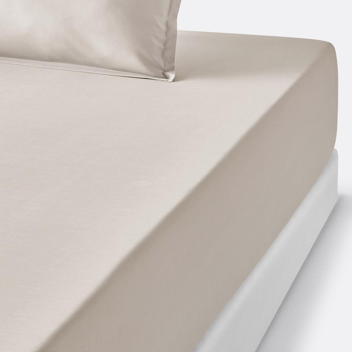 This cotton percale fitted sheet is super soft and luxurious for a comfortable night's sleep!The cotton percale offers a pleasant feeling of freshness and lightness. Its tight weave makes it particularly soft for premium comfort. A matte and smooth material that will soften over time. Product Details Cotton percale • 100% cotton • 200 thread count: The higher the thread count, the higher the quality of the weave • Easy care treatment: makes ironing easier • 35cm flap for thick mattresses • 4 elasticated corners Care Advice • Machine washable at 60°C • By washing your laundry at 40°C instead of 60°C, you limit energy consumption. Sizes • 90 x 190cm: Single • 90 x 200cm : Single • 140 x 190cm: Double • 140 x 200cm: Double • 160 x 200cm: King • 180 x 200cm: Super King • OEKO-TEX® Standard 100. Standard 100 certification by OEKO-TEX® tests textile products for harmful substances via an independent, international label.