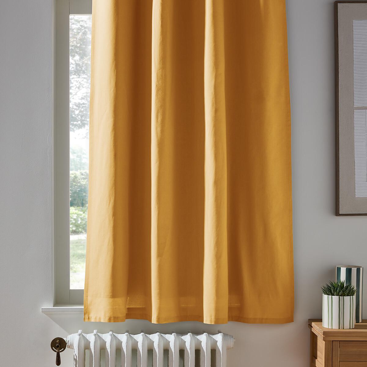 Ready to fit, the Scenario blackout radiator curtain has cotton canvas on the front and a blackout lining to block out the light. Cotton is part of our daily lives. We love it for its suppleness and softness. The eyelets guarantee nice regular waves and ensure the fabric falls beautifully. They slide perfectly on the rod, making it easy to open and close the curtain. Product Details • Blackout • 100% cotton (195g/m2) • Unbleached lining, 100% polyester, 150g/m2 • Top finish : silver-coloured eyelets • Internal diameter of eyelets : 4cm/1.5" • Finished bottom :Plain hemmed edging. To help you in the choice and maintenance of your curtains, do not hesitate to consult our guide by typing "Curtain Buying Guide" in our search engine on the site. Care Advice • Machine washable at 30°C • Maximum shrinkage after washing : Approximately 5 to 7%. Fabrics made from natural fibres may shrink in the first wash. Always wash your curtains before making any alterations. • Do not tumble dry • If you don't need to iron them (linen curtains, Voile Panel...), let the curtains air dry by hanging them immediately after washing, making sure to spread them out to their full width. • If you want to iron your curtains, we recommend using a low-temperature steam iron or a steamer. Dimensions • Drop 180 x 135cm