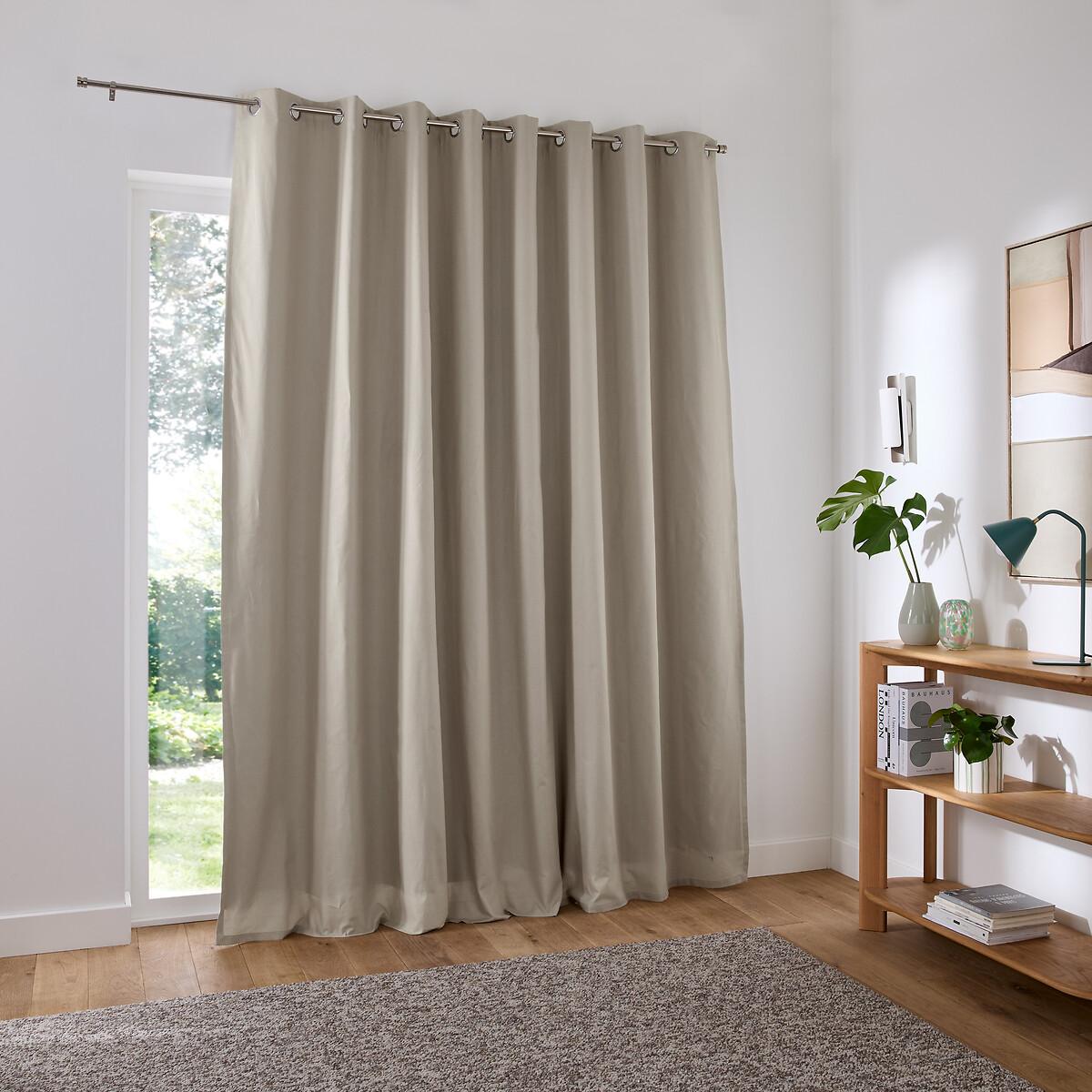 The Scenario curtain with eyelets in beautiful cotton bachette fabric, in a large width and blackout version. This range of curtains can be mixed and matched with the entire Scenario decoration collection. Harmony guaranteed ! This blackout curtain blocks out light and keeps your home private. Perfect for a bedroom without shutters. Cotton is part of our daily lives. We love it for its suppleness and softness. The eyelets guarantee nice regular waves and ensure the fabric falls beautifully. They slide perfectly on the rod, making it easy to open and close the curtain. Product Details • Front in 100% cotton • 100% polyester unbleached lining • Eyelets • Inner diameter of eyelets: 4cm/1.5" • Stitched hem. To help you in the choice and maintenance of your curtains, do not hesitate to consult our guide by typing "Curtain Buying Guide" in our search engine on the site. Care Advice • Machine washable at 40°C • Maximum shrinkage after washing : Approximately 5 to 7%. Fabrics made from natural fibres may shrink in the first wash. Always wash your curtains before making any alterations. • Do not tumble dry • If you don't need to iron them (linen curtains, Voile Panel...), let the curtains air dry by hanging them immediately after washing, making sure to spread them out to their full width. • If you want to iron your curtains, we recommend using a low-temperature steam iron or a steamer. Dimensions • Height 260 x width 270cm • OEKO-TEX® Standard 100. Standard 100 certification by OEKO-TEX® tests textile products for harmful substances via an independent, international label.