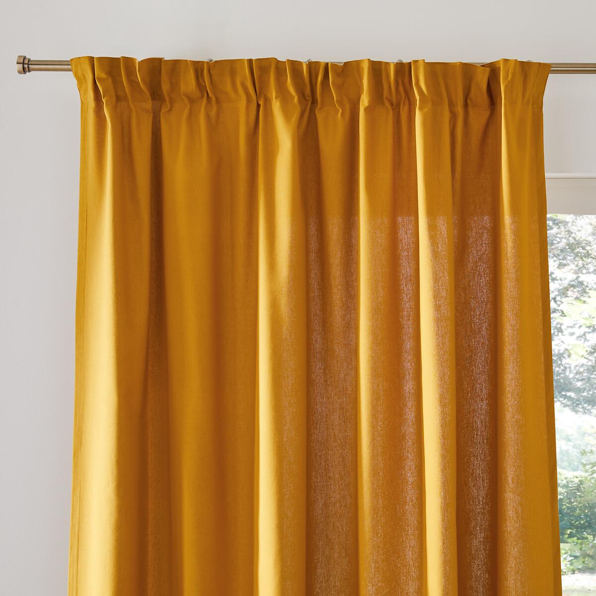 Scenario curtain with gathered header in beautiful cotton canvas. A range of curtains to mix with the entire Scenario collection. Cotton is part of our daily lives. We love it for its suppleness and softness. The gathering braid creates pleats according to the spacing you want. A choice of hook positions (hooks sold separately on the website) allows you to choose the drop to conceal or show off the curtain rail. Product Details • Screening • 100% cotton, (195g/m²) • Top finish : gathering tape • Finished bottom : overlocked (supplied with iron-on hem). Add 5cm to the length to allow for hemming • Sold with fixing hooks. To help you in the choice and maintenance of your curtains, do not hesitate to consult our guide by typing "Curtain Buying Guide" in our search engine on the site. Care Advice • Machine washable at 40°C • Maximum shrinkage after washing : Approximately 5 to 7%. Fabrics made from natural fibres may shrink in the first wash. Always wash your curtains before making any alterations. • Do not tumble dry • If you don't need to iron them (linen curtains, Voile Panel...), let the curtains air dry by hanging them immediately after washing, making sure to spread them out to their full width. • If you want to iron your curtains, we recommend using a low-temperature steam iron or a steamer. Dimensions • Drop 180 x W135cm • D220 x W135cm • D260 x W135cm • Drop 350 x W135cm