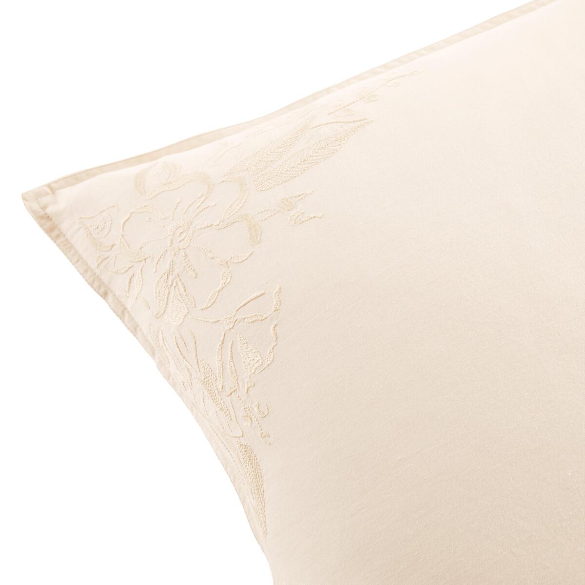 A superb pillowcase with delicate embroidery. The washed cotton has been delicately bleached during its manufacture. Soft, supple and comfortable, it softens over time. Its slightly wrinkled appearance is incredibly on-trend, and it does not require ironing.
