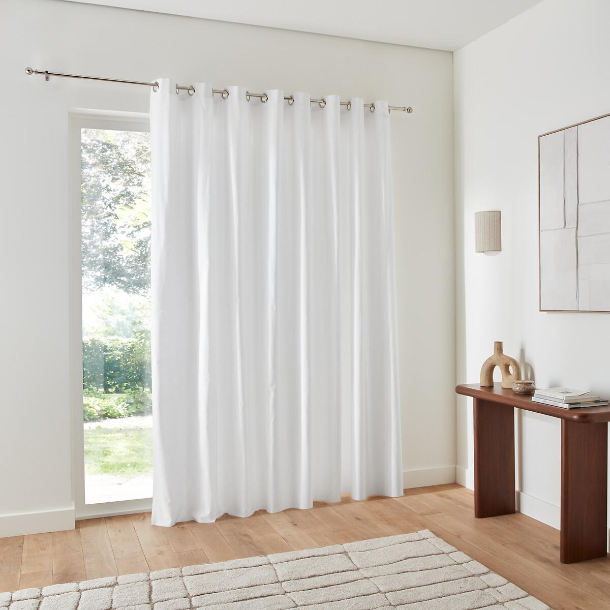 Ideal for bay windows, the wide-width Scenario eyelet-finish curtain is made of beautiful cotton tarpaulin.. Our Scenario range is endlessly versatile and mixes easily with other items in the range and from our other collections. Cotton is part of our daily lives. We love it for its suppleness, softness and ease of care. The eyelets guarantee nice regular waves and ensure the fabric falls beautifully. They slide perfectly on the rod, making it easy to open and close the curtain. Product Details • Screening • 100% cotton, (195g/m²) • Top finish : silver-coloured eyelets • Inner diameter of eyelets: 4cm/1.5" • Finished bottom : Overlocked hem (supplied with iron-on tape)To help you in the choice and maintenance of your curtains, do not hesitate to consult our guide by typing "Curtain Buying Guide" in our search engine on the site. Care Advice • Machine washable at 40°C • Maximum shrinkage after washing : Approximately 5 to 7%. Fabrics made from natural fibres may shrink in the first wash. Always wash your curtains before making any alterations. • Do not tumble dry • If you don't need to iron them (linen curtains, Voile Panel...), let the curtains air dry by hanging them immediately after washing, making sure to spread them out to their full width. • If you want to iron your curtains, we recommend using a low-temperature steam iron or a steamer. Dimensions • Drop 260 x Width 280cm