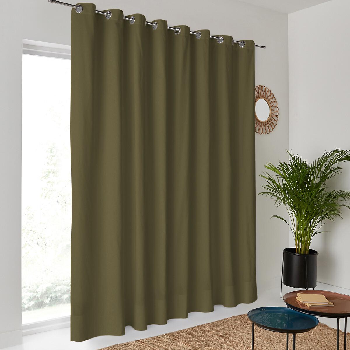 Ideal for bay windows, the wide-width Scenario eyelet-finish curtain is made of beautiful cotton tarpaulin.. Our Scenario range is endlessly versatile and mixes easily with other items in the range and from our other collections. Cotton is part of our daily lives. We love it for its suppleness, softness and ease of care. The eyelets guarantee nice regular waves and ensure the fabric falls beautifully. They slide perfectly on the rod, making it easy to open and close the curtain. Product Details • Screening • 100% cotton, (195g/m²) • Top finish : silver-coloured eyelets • Inner diameter of eyelets: 4cm/1.5" • Finished bottom : Overlocked hem (supplied with iron-on tape)To help you in the choice and maintenance of your curtains, do not hesitate to consult our guide by typing "Curtain Buying Guide" in our search engine on the site. Care Advice • Machine washable at 40°C • Maximum shrinkage after washing : Approximately 5 to 7%. Fabrics made from natural fibres may shrink in the first wash. Always wash your curtains before making any alterations. • Do not tumble dry • If you don't need to iron them (linen curtains, Voile Panel...), let the curtains air dry by hanging them immediately after washing, making sure to spread them out to their full width. • If you want to iron your curtains, we recommend using a low-temperature steam iron or a steamer. Dimensions • Drop 260 x Width 280cm
