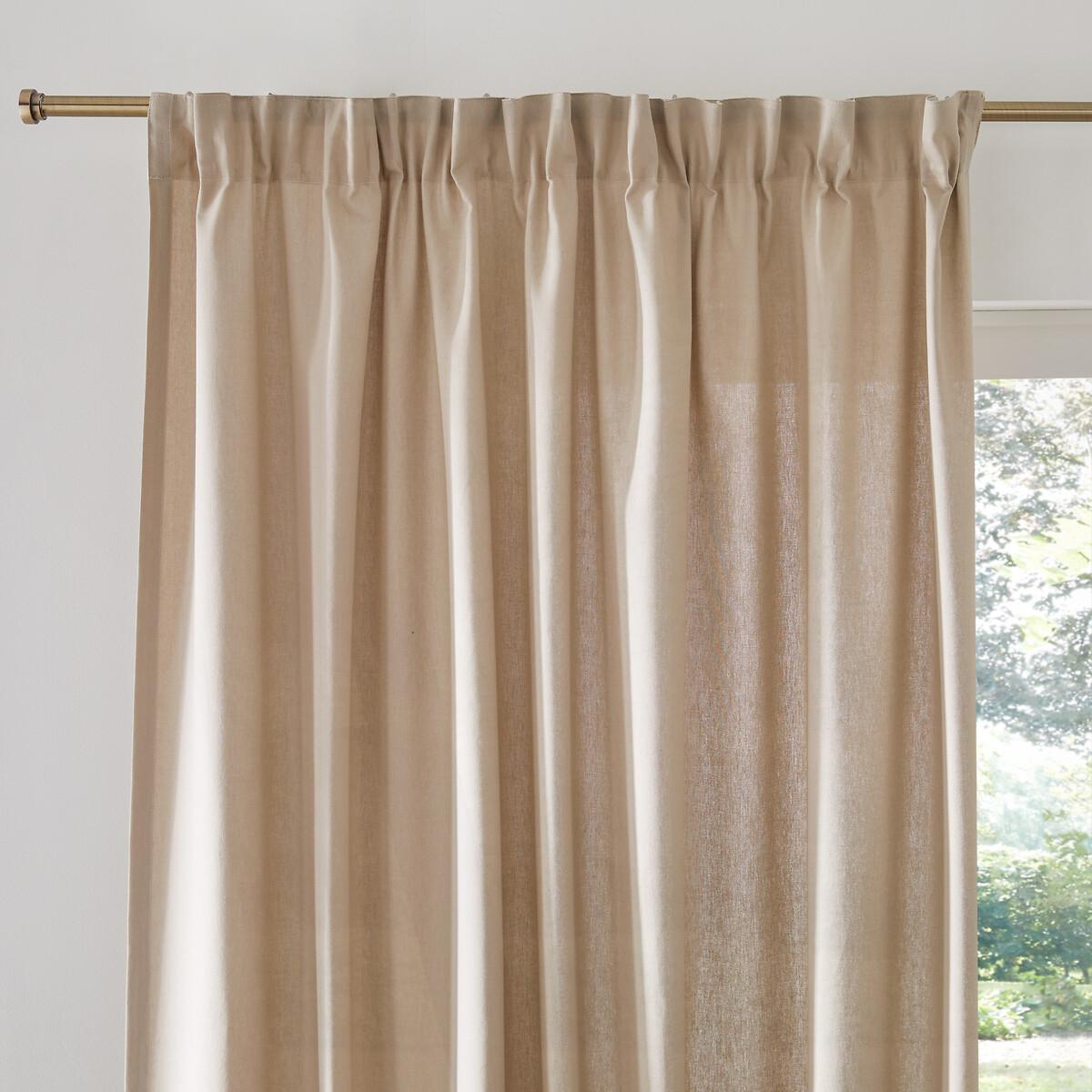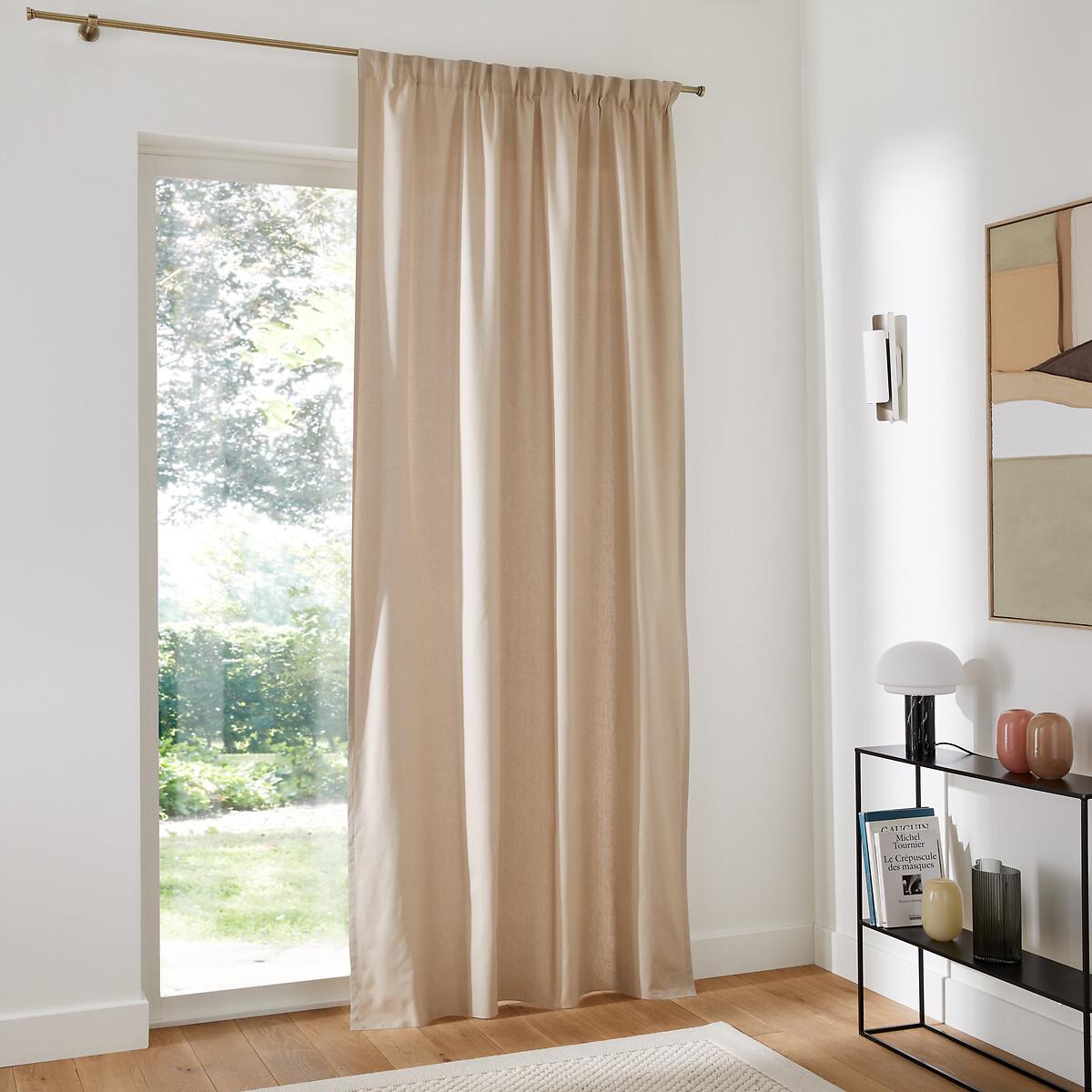 Scenario curtain with gathered header in beautiful cotton canvas. A range of curtains to mix with the entire Scenario collection. Cotton is part of our daily lives. We love it for its suppleness and softness. The gathering braid creates pleats according to the spacing you want. A choice of hook positions (hooks sold separately on the website) allows you to choose the drop to conceal or show off the curtain rail. Product Details • Screening • 100% cotton, (195g/m²) • Top finish : gathering tape • Finished bottom : overlocked (supplied with iron-on hem). Add 5cm to the length to allow for hemming • Sold with fixing hooks. To help you in the choice and maintenance of your curtains, do not hesitate to consult our guide by typing "Curtain Buying Guide" in our search engine on the site. Care Advice • Machine washable at 40°C • Maximum shrinkage after washing : Approximately 5 to 7%. Fabrics made from natural fibres may shrink in the first wash. Always wash your curtains before making any alterations. • Do not tumble dry • If you don't need to iron them (linen curtains, Voile Panel...), let the curtains air dry by hanging them immediately after washing, making sure to spread them out to their full width. • If you want to iron your curtains, we recommend using a low-temperature steam iron or a steamer. Dimensions • Drop 180 x W135cm • D220 x W135cm • D260 x W135cm • Drop 350 x W135cm