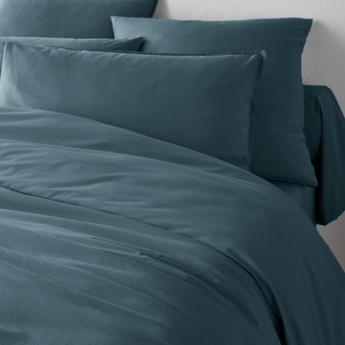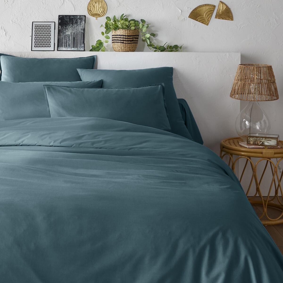 Duvet cover in cotton percale from organic farming. The cotton percale offers a pleasant feeling of freshness and lightness. Its tight weave makes it particularly soft for premium comfort. A matte and smooth material that will soften over time. Product Details • 100% cotton • Cotton percale • Organic cotton • 200 thread count: The higher the thread count, the higher the quality of the weave • Easy care treatment: makes ironing easier • Envelope-style opening. Care Advice • Machine washable at 60°C • By washing your laundry at 40°C instead of 60°C, you limit energy consumption. Sizes • 140 x 200cm: Single • 200 x 200cm: Double • 240 x 220cm: King • 260 x 240cm: Super King. Pillowcases sold separately. • Cotton from organic farming. Organic farming does not use any chemicals, pesticides, insecticides or GMOs. Produced with minimal impact on biodiversity.