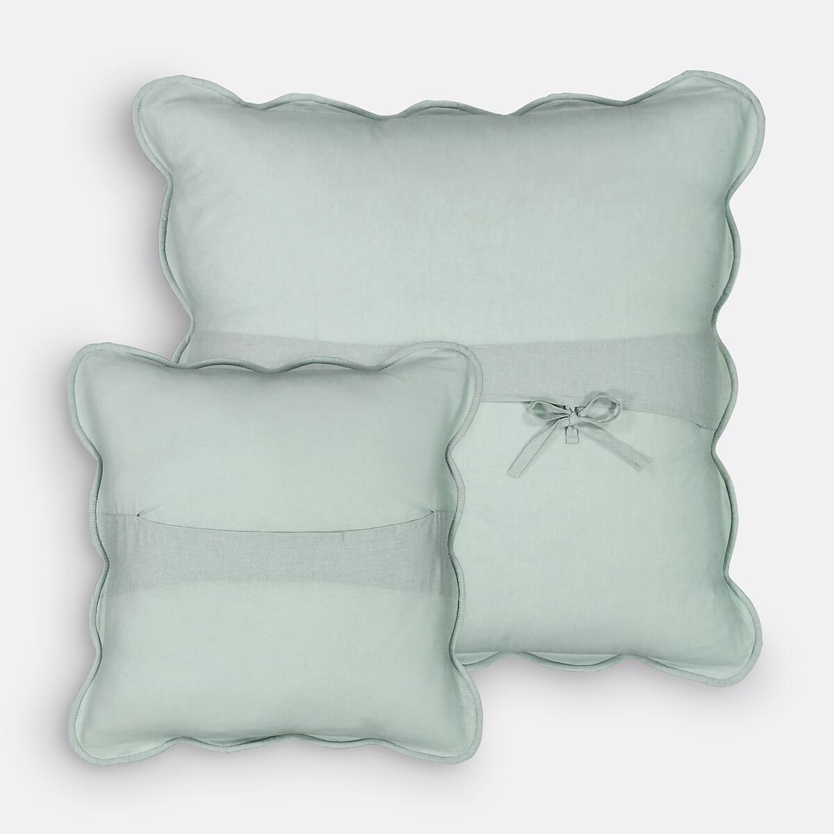 The Scenario quilted cotton cushion cover or pillowcase: True craftsmanship. Elegant quilted pillowcase in 100% cotton.. Product Details • Chic pillow cover in 100% cotton, filled with cotton fibres (250g/m²) • Scalloped Edge • Wallet shape and closed with ties for the 65 x 65cm size. See the full Scenario range online. Care Advice • Cover is washable at 40°CSizes • 40 x 40cm • 65 x 65cm • OEKO-TEX® Standard 100. Standard 100 certification by OEKO-TEX® tests textile products for harmful substances via an independent, international label.