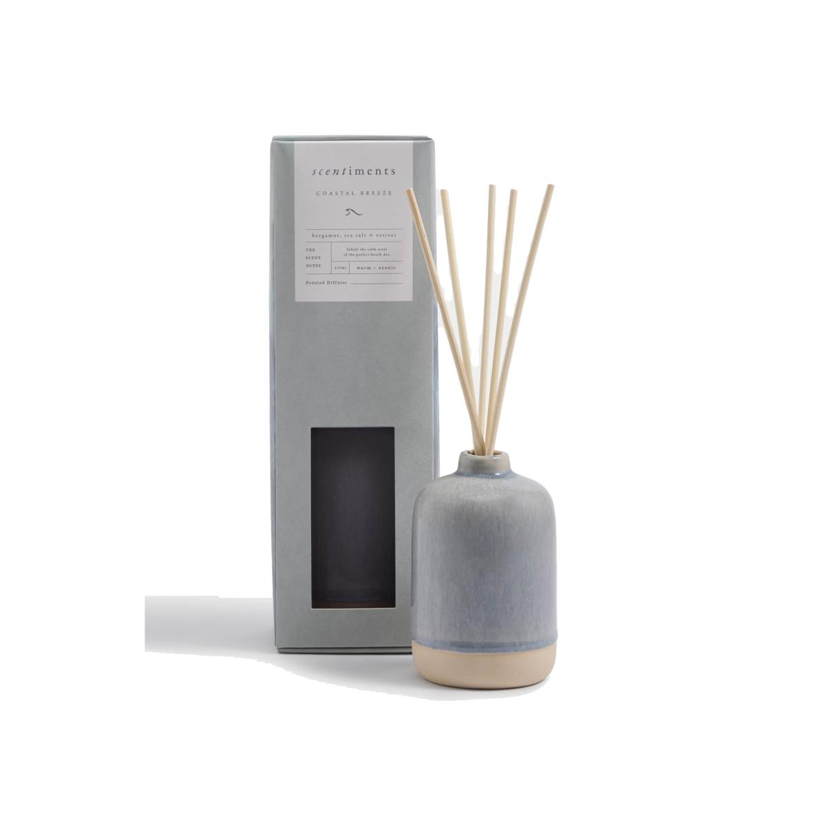 Create a subtle, welcoming atmosphere in your room with the Coastal Breeze diffuser from the Scentiments collection. Its refreshing fragrance combines uplifting sea salt, zesty neroli and warm musk. The stylish ceramic vessel has a reactive glaze, so each piece is unique. This fragrance is part of the Citrus family of fragrances. Citrus scents are refreshing and zesty and may include notes such as lemon, bergamot, grapefruit, orange and mandarin amongst others.