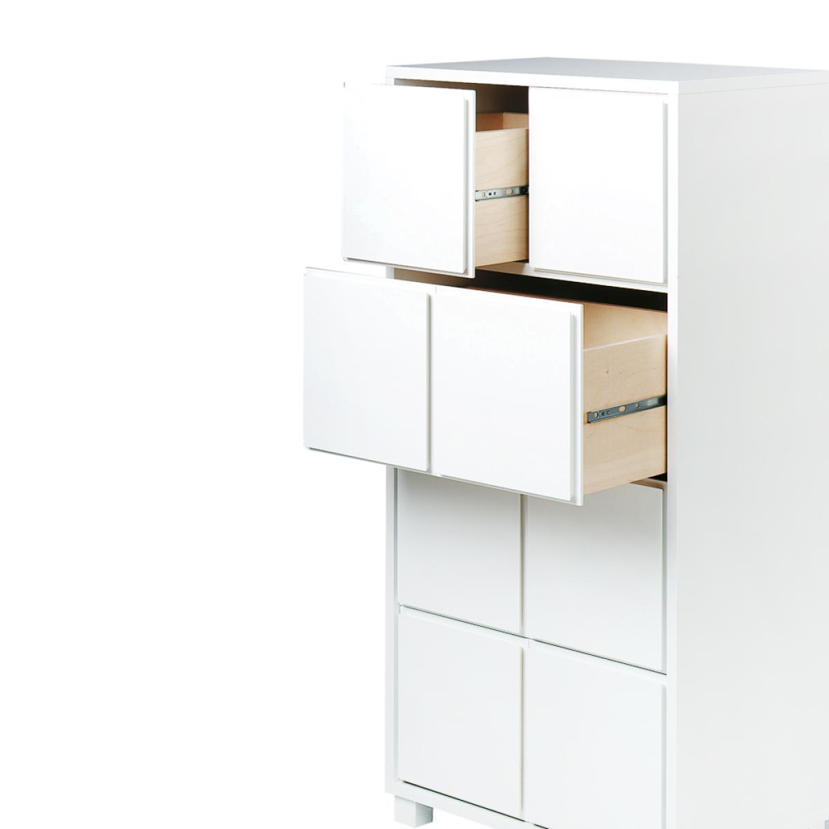 I love this white chest of drawers for its clean, modern aesthetic and versatile style. It works particularly well in minimalist, Scandinavian, or contemporary interiors, adding a fresh and airy feel to any space. Practical styling tips include keeping surfaces clutter-free to highlight its sleek lines, and incorporating soft textural accessories like woven baskets or cosy throws on top to add warmth. It's also a great piece for bedrooms or living rooms, providing ample storage while maintaining a tidy look. Due to its neutral palette, you can easily personalise it with colourful or patterned accessories for a more eclectic feel.