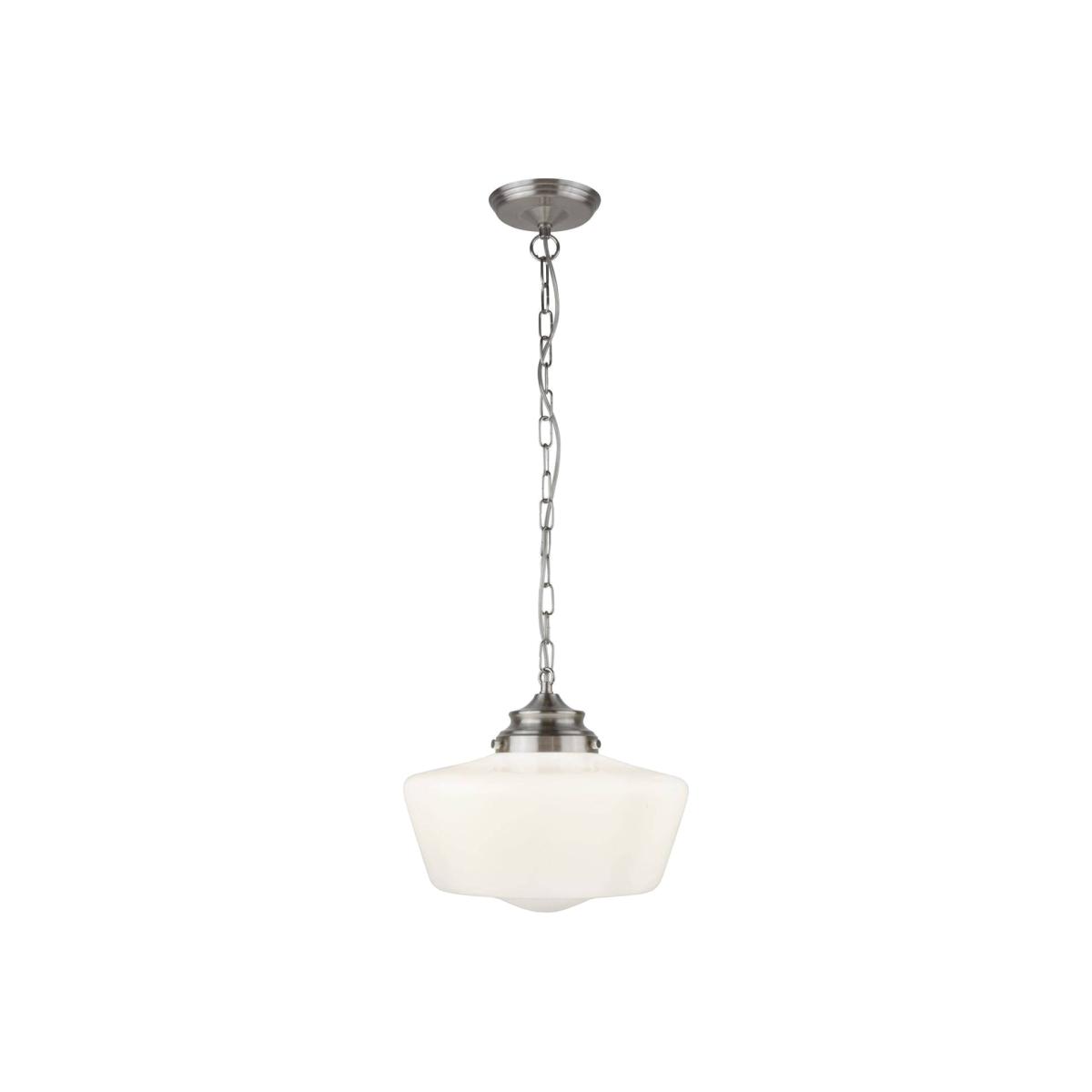 School House 1 Light Pendant Satin Silver, White IP44, E27 - Satin Silver