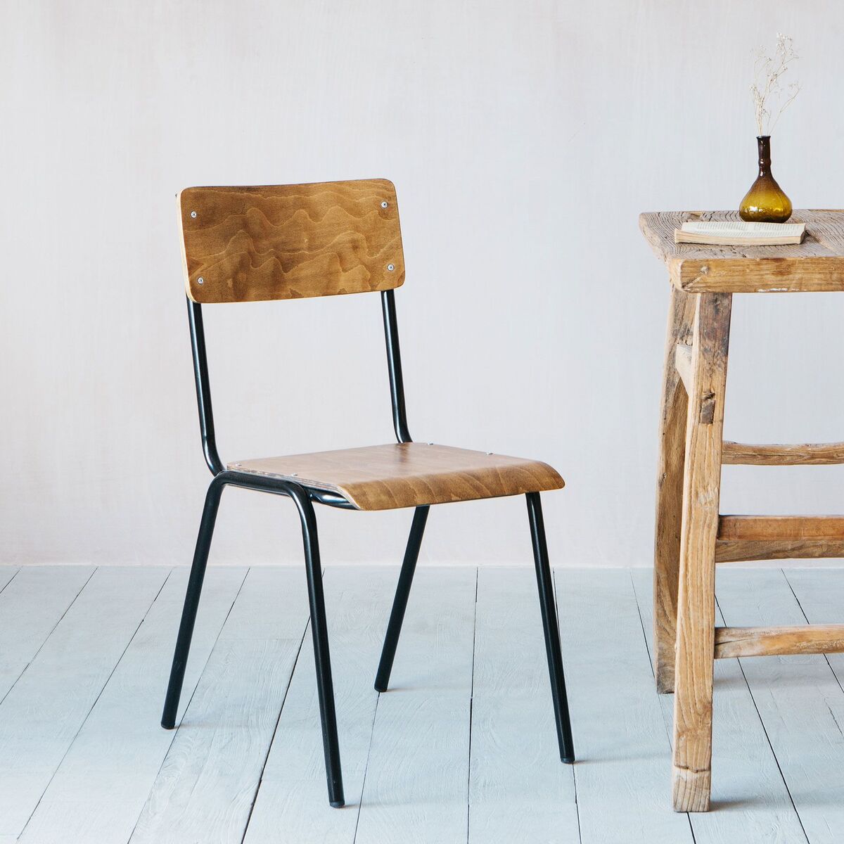 Bring old school style to your home with this wood and metal dining chair. Pair with an industrial desk and task light for a productive work space or line them up around a rustic wooden table for vintage canteen style dining.