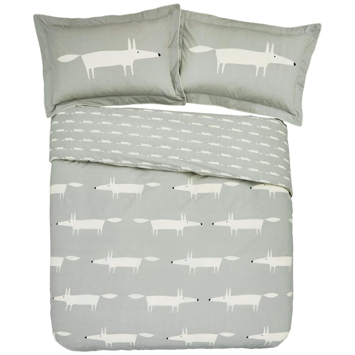 Scion Cotton Mr Fox Patterned Pillowcase - Silver