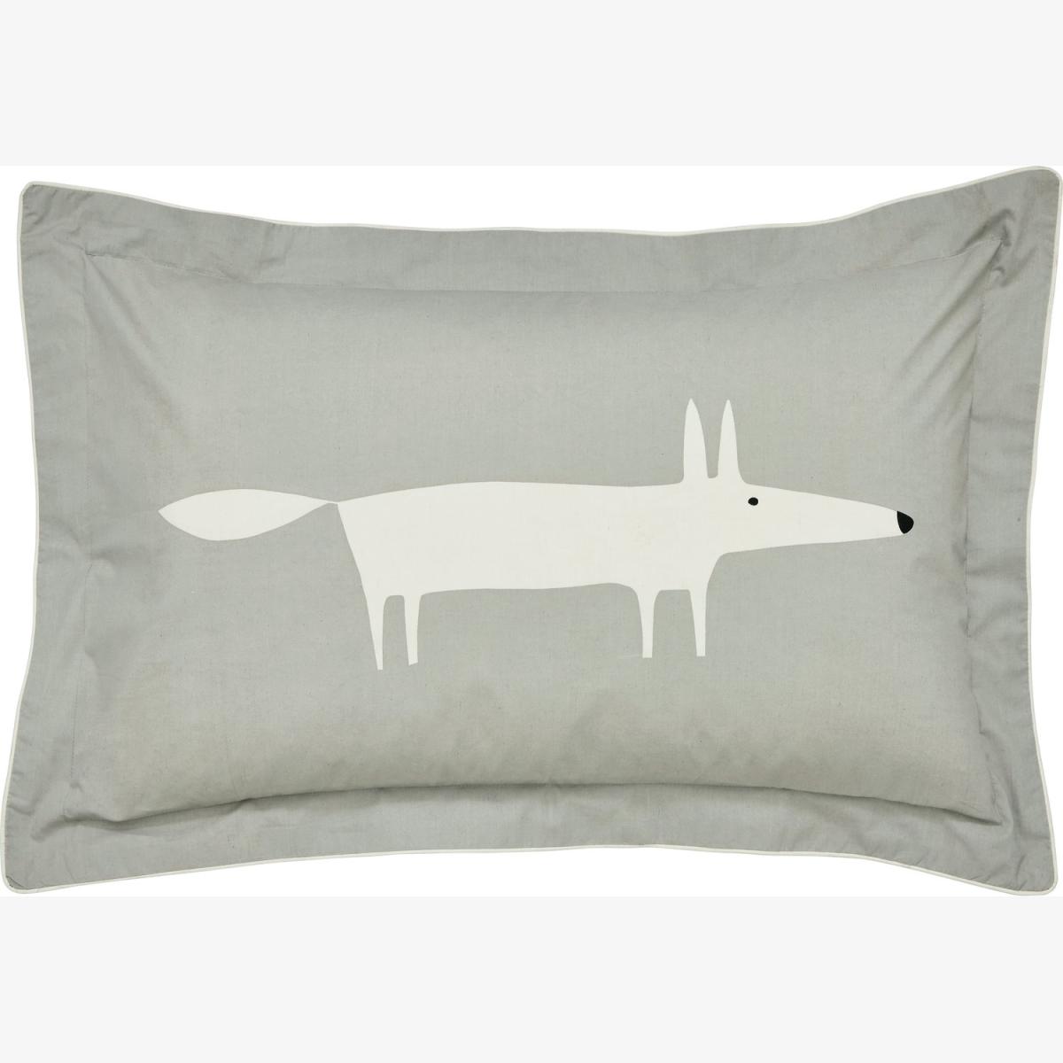 Mr Fox returns to centre stage in his latest incarnation! Silver and sleek with ivory piping, large-scale Mr Fox prowls across the 100% cotton percale duvet cover and on the reverse his small-scale cubs keep guard. The duvet cover is available in all four sizes, so now children and adults alike can indulge in their adoration for Mr Fox! 1 pillowcase. Pillowcase style: Oxford. Finish: woven. 100% cotton. 180 thread count. Size L74, W48cm. Dust or wipe with a damp cloth only.