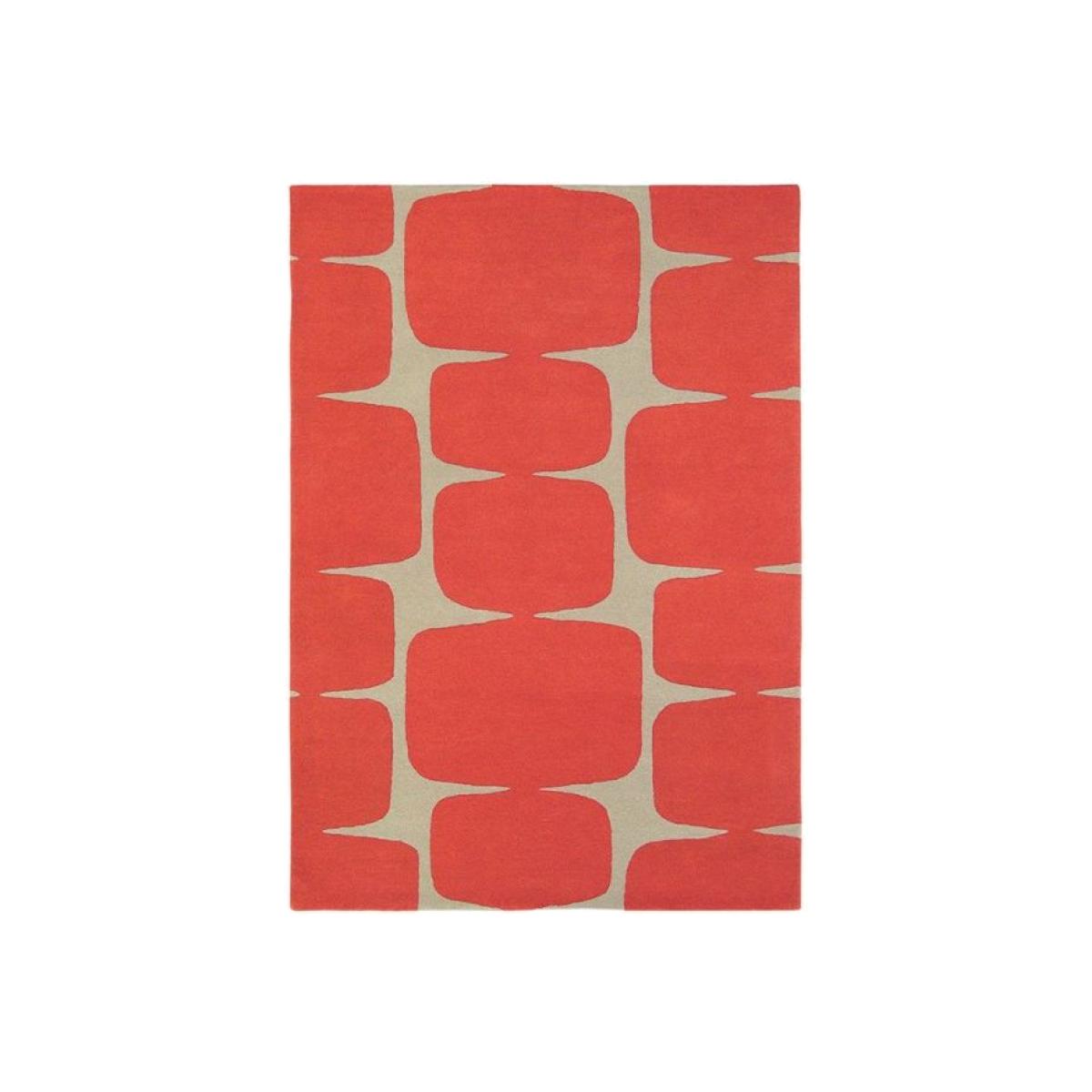 I love this rug because of its bold, geometric pattern and vibrant poppy colour, which can instantly energise a space. It works particularly well in contemporary or minimalist interiors where it can serve as a statement piece, but it’s also versatile enough to add a playful touch to more eclectic or retro-inspired rooms. For practical styling, consider pairing it with neutral sofas or furniture to let the rug stand out, and add accessories in complementary tones to create a cohesive look. It's a great option for living rooms, dining areas, or even bedrooms where a splash of colour can make all the difference.