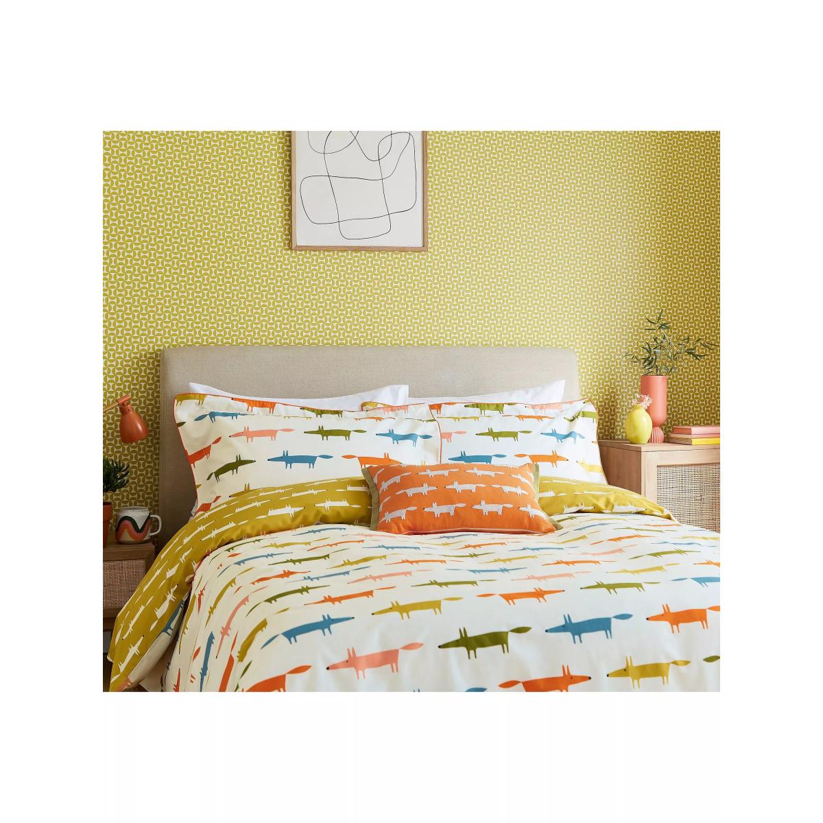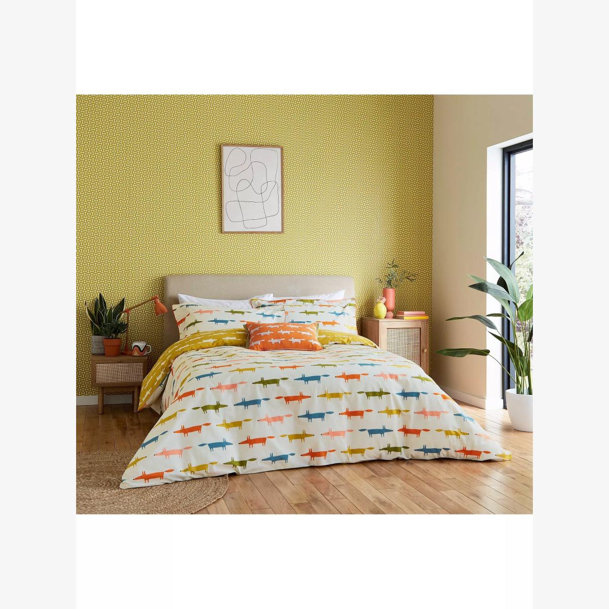 Scion is 10 years old and it's party time! Cheerful, multi-colour and miniature foxes from the iconic Mr Fox design swagger across this birthday special edition duvet set. A popping palette mixes with a cosy 100% cotton base, all sourced from the Better Cotton Initiative. The single set comes with one Oxford pillowcase, while the double, king and super king sets come with two Oxford pillowcases. Have you thought about sheeting? Shop here. Bedding sizes To fit duvet/pillow size (cm) Oxford pillowcase, L75 x W50cm (plus frill) Single duvet cover, L200 x W135cm Double duvet cover, L200 x W200cm King duvet cover, L220 x W225cm Super king duvet cover, L220 x W260cm