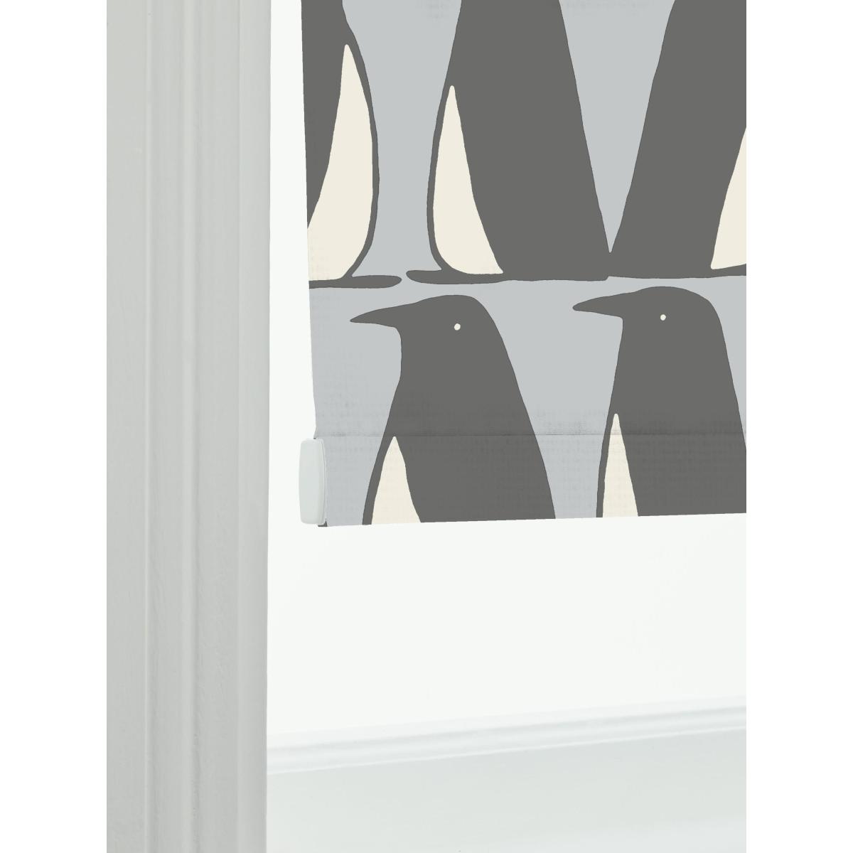 Made according to your requirements our Digital Print range of roller blinds lets you create a blind to fit your personal requirements using well-known branded designs. Pedro is a much-loved character from Scion, with the repeated motif making it look like a family of penguins waddling together across the ice. This is a blackout blind, so it eliminates light and gives you 100% privacy. This makes them a perfect choice for bedrooms as they help you get a good night's sleep, blocking out light pollution as well as the early-rising sun in the spring and summer months. As a default, it's also moisture-resistant which makes it suitable for kitchens and bathrooms, but you can choose for it to be water-resistant which is a good option for bathrooms if you have young children who enjoy making a splash at bath-time. Key features: Can be installed either inside or outside the window recess, to the wall or ceiling Can be standard or reverse rolled. Standard gives a close fit to the window, helping eliminate light. Reverse brings the material forward over the roll which conceals it and creates space between the blind and window Includes a metal chain mechanism which can be attached on the left or right-hand side, without affecting the way the blind is rolled Supplied with easy-fit universal brackets Includes safety devices to keep children safe Warm in winter, cool in summer As the blackout lining on this blind blocks out sunlight it helps keep your room cool as well as dark. This 3 layer blackout coating also adds an extra layer of insulation, giving the blind thermal properties which aren't found on non-blackout blinds. It protects against both heat loss and heat gain, regulating the temperature of your room so you're kept warm in winter and cool in summer. Size restrictions: Minimum size: W40 x Drop 40cm Maximum size: W280 x Drop 350cm Child safety For safety, we recommend that you move beds, cots and furniture away from any window fitted with a blind that has a side control mechanism, even with a safety device in place. Your blind will come with a double-breakaway child safety device on the chain. This is designed to come apart when too much pressure is applied. You can simply reconnect the chain should this happen. If your measurements don't allow for a breakaway chain we'll include a P-clip with your order instead. The clip allows you to safely secure the chain to your wall, which you can see in the above images. If this is the case for your order we'll always call you before fulfilling your order so you're aware. Please make sure you understand the information on our Child Safety Hub before placing your order. Ready to place your order, or looking for more advice? If you're interested in our Digital Print blinds and are ready to place your order, or need a little more advice, there are a few ways we can help. Firstly, come into any of our shops and speak to a Partner. Alternatively, we can come to you as we're also now offering in-home appointments. Finally, you can book a virtual appointment and speak to one of our estimators on a video or phone call. They'll provide a combination of practical measuring, design and technical advice. Find out more about our services and book an appointment here