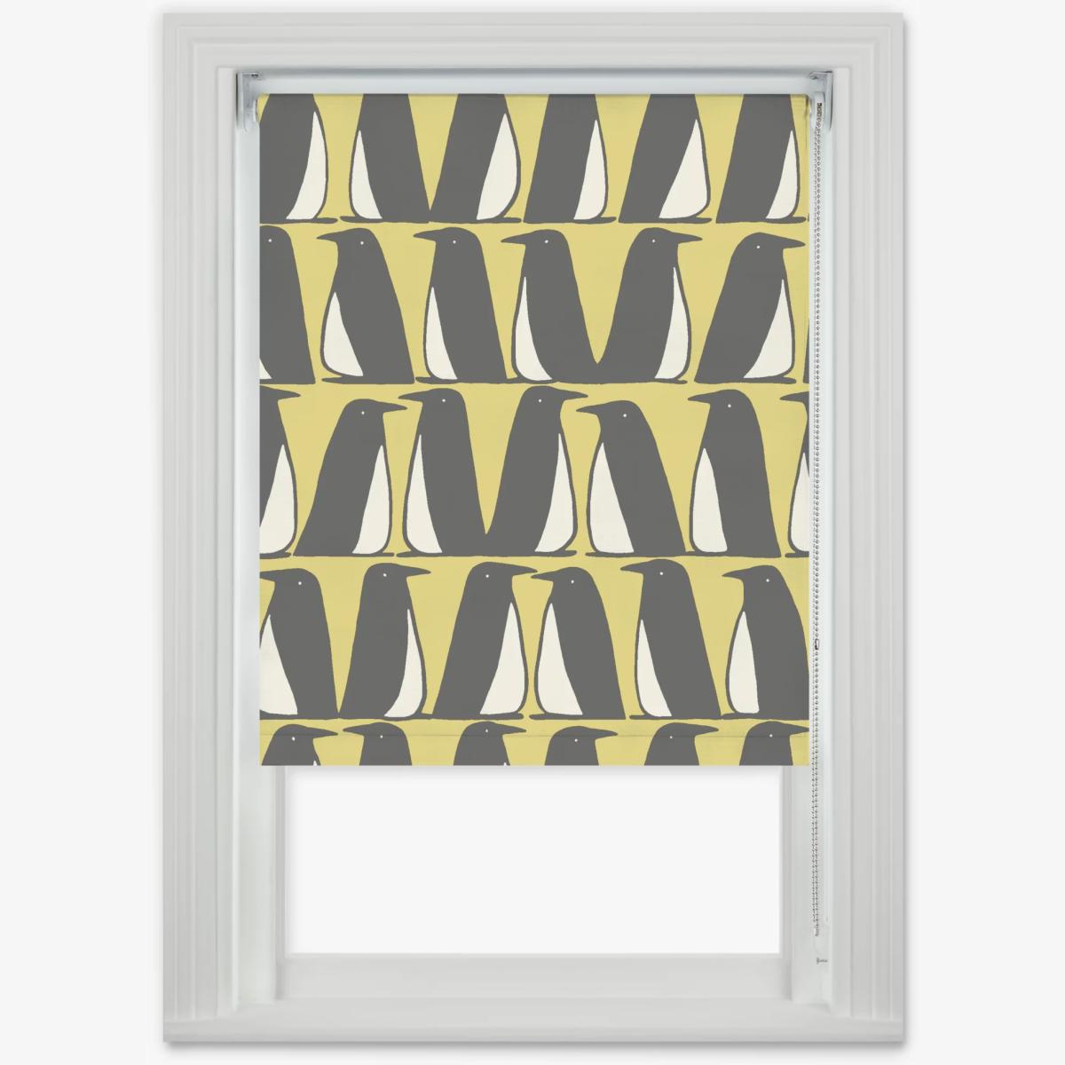 Made according to your requirements our Digital Print range of roller blinds lets you create a blind to fit your personal requirements using well-known branded designs. Pedro is a much-loved character from Scion, with the repeated motif making it look like a family of penguins waddling together across the ice. This is a blackout blind, so it eliminates light and gives you 100% privacy. This makes them a perfect choice for bedrooms as they help you get a good night's sleep, blocking out light pollution as well as the early-rising sun in the spring and summer months. As a default, it's also moisture-resistant which makes it suitable for kitchens and bathrooms, but you can choose for it to be water-resistant which is a good option for bathrooms if you have young children who enjoy making a splash at bath-time. Key features: Can be installed either inside or outside the window recess, to the wall or ceiling Can be standard or reverse rolled. Standard gives a close fit to the window, helping eliminate light. Reverse brings the material forward over the roll which conceals it and creates space between the blind and window Includes a metal chain mechanism which can be attached on the left or right-hand side, without affecting the way the blind is rolled Supplied with easy-fit universal brackets Includes safety devices to keep children safe Warm in winter, cool in summer As the blackout lining on this blind blocks out sunlight it helps keep your room cool as well as dark. This 3 layer blackout coating also adds an extra layer of insulation, giving the blind thermal properties which aren't found on non-blackout blinds. It protects against both heat loss and heat gain, regulating the temperature of your room so you're kept warm in winter and cool in summer. Size restrictions: Minimum size: W40 x Drop 40cm Maximum size: W280 x Drop 350cm Child safety For safety, we recommend that you move beds, cots and furniture away from any window fitted with a blind that has a side control mechanism, even with a safety device in place. Your blind will come with a double-breakaway child safety device on the chain. This is designed to come apart when too much pressure is applied. You can simply reconnect the chain should this happen. If your measurements don't allow for a breakaway chain we'll include a P-clip with your order instead. The clip allows you to safely secure the chain to your wall, which you can see in the above images. If this is the case for your order we'll always call you before fulfilling your order so you're aware. Please make sure you understand the information on our Child Safety Hub before placing your order. Ready to place your order, or looking for more advice? If you're interested in our Digital Print blinds and are ready to place your order, or need a little more advice, there are a few ways we can help. Firstly, come into any of our shops and speak to a Partner. Alternatively, we can come to you as we're also now offering in-home appointments. Finally, you can book a virtual appointment and speak to one of our estimators on a video or phone call. They'll provide a combination of practical measuring, design and technical advice. Find out more about our services and book an appointment here