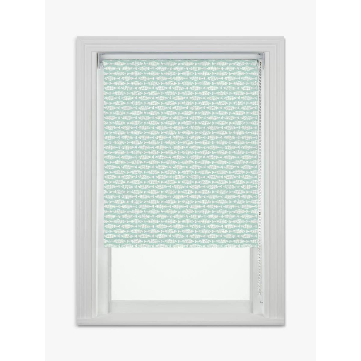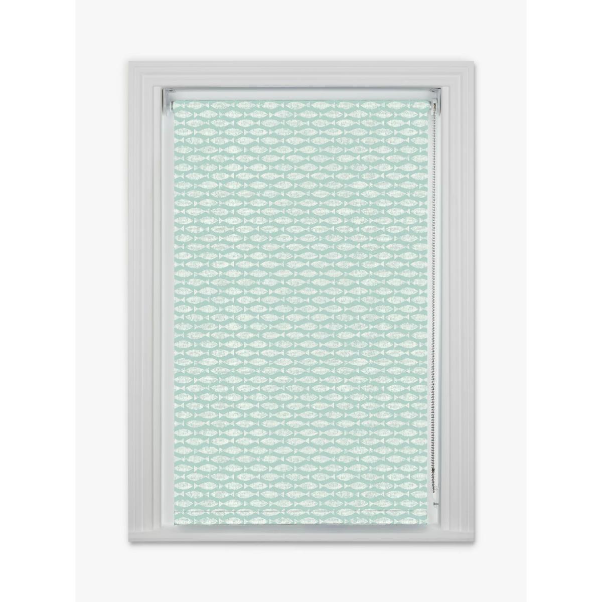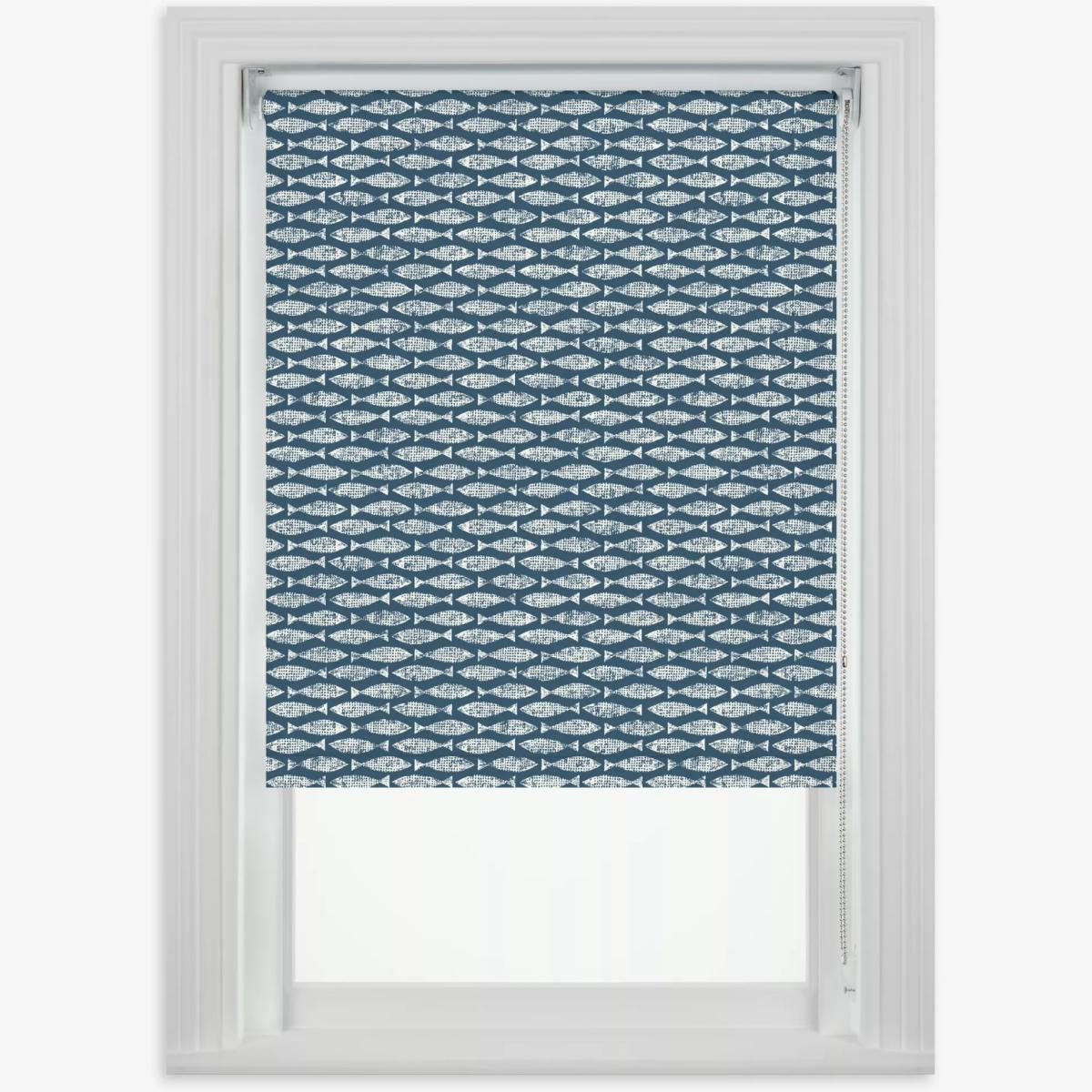 Made according to your requirements our Digital Print range of roller blinds lets you create a blind to fit your personal requirements using well-known branded designs. Part of Scion's successful Wabi Sabi collection, Samaki is a playful design which, at a distance, appears to be a simple coloured lattice-like pattern. Up close you can see it's actually a tightly repeating fish motif. This is a blackout blind, so it eliminates light and gives you 100% privacy. This makes them a perfect choice for bedrooms as they help you get a good night's sleep, blocking out light pollution as well as the early-rising sun in the spring and summer months. As a default, it's also moisture-resistant which makes it suitable for kitchens and bathrooms, but you can choose for it to be water-resistant which is a good option for bathrooms if you have young children who enjoy making a splash at bath-time. Key features: Can be installed either inside or outside the window recess, to the wall or ceiling Can be standard or reverse rolled. Standard gives a close fit to the window, helping eliminate light. Reverse brings the material forward over the roll which conceals it and creates space between the blind and window Includes a metal chain mechanism which can be attached on the left or right-hand side, without affecting the way the blind is rolled Supplied with easy-fit universal brackets Includes safety devices to keep children safe Warm in winter, cool in summer As the blackout lining on this blind blocks out sunlight it helps keep your room cool as well as dark. This 3 layer blackout coating also adds an extra layer of insulation, giving the blind thermal properties which aren't found on non-blackout blinds. It protects against both heat loss and heat gain, regulating the temperature of your room so you're kept warm in winter and cool in summer. Size restrictions: Minimum size: W40 x Drop 40cm Maximum size: W280 x Drop 350cm Child safety For safety, we recommend that you move beds, cots and furniture away from any window fitted with a blind that has a side control mechanism, even with a safety device in place. Your blind will come with a double-breakaway child safety device on the chain. This is designed to come apart when too much pressure is applied. You can simply reconnect the chain should this happen. If your measurements don't allow for a breakaway chain we'll include a P-clip with your order instead. The clip allows you to safely secure the chain to your wall, which you can see in the above images. If this is the case for your order we'll always call you before fulfilling your order so you're aware. Please make sure you understand the information on our Child Safety Hub before placing your order. Ready to place your order, or looking for more advice? If you're interested in our Digital Print blinds and are ready to place your order, or need a little more advice, there are a few ways we can help. Firstly, come into any of our shops and speak to a Partner. Alternatively, we can come to you as we're also now offering in-home appointments. Finally, you can book a virtual appointment and speak to one of our estimators on a video or phone call. They'll provide a combination of practical measuring, design and technical advice. Find out more about our services and book an appointment here