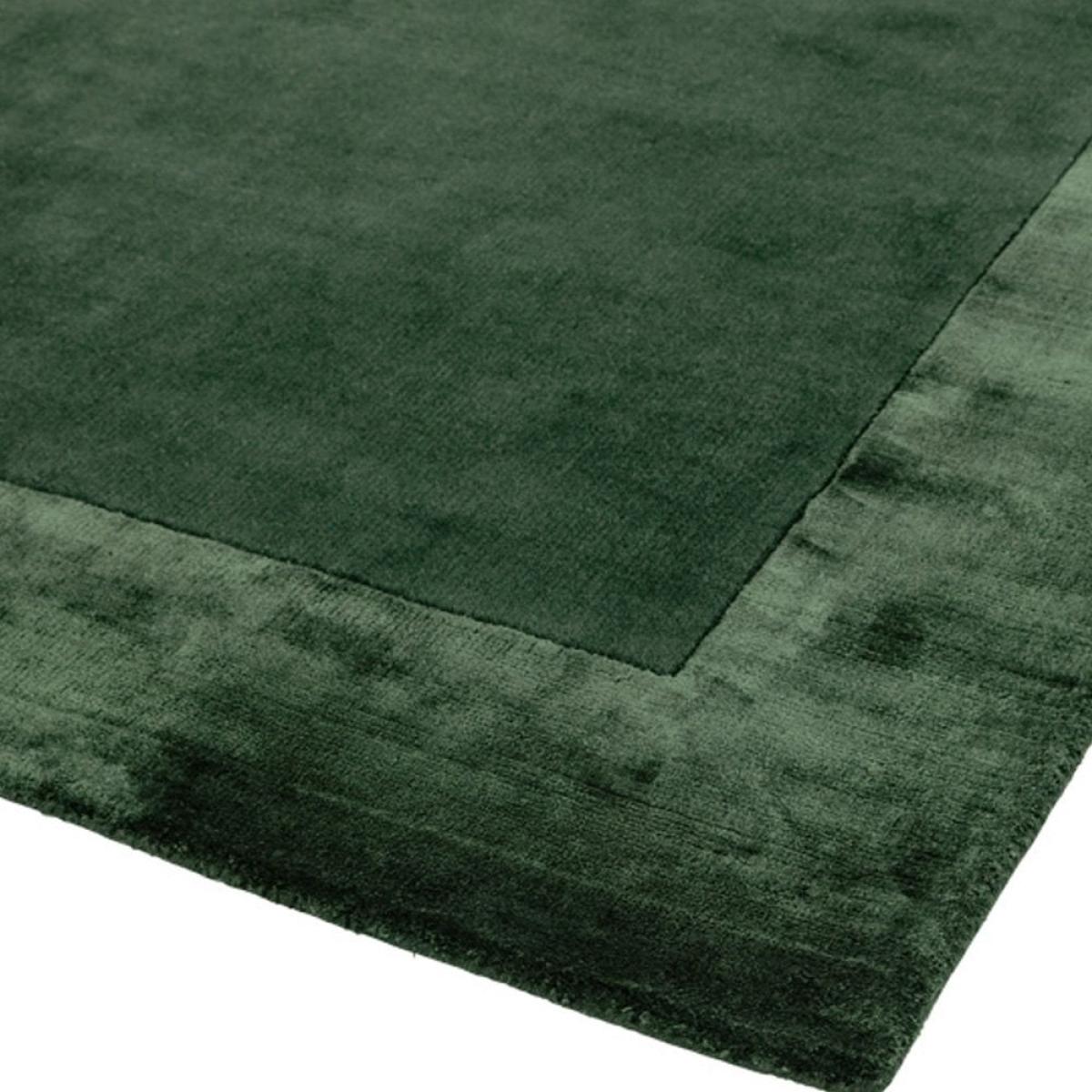 The Scofield hand-tufted rug in green makes a bold statement with its smart viscose border. The handwoven Scofield rug adds warmth to your space, whilst tying the room's interior style together. A perfect match for your living or dining room and bedroom.