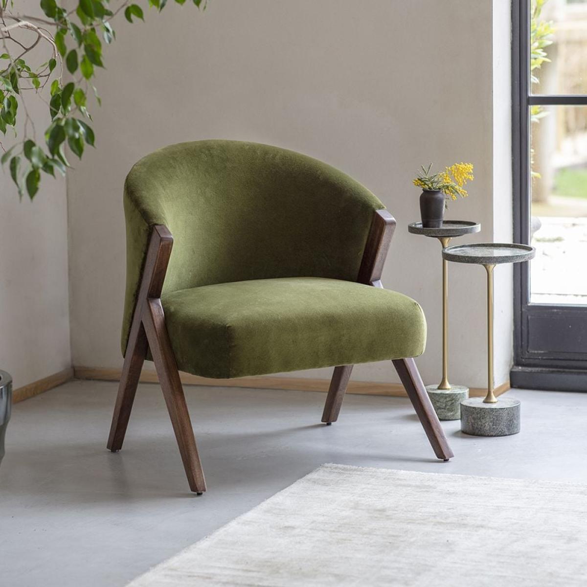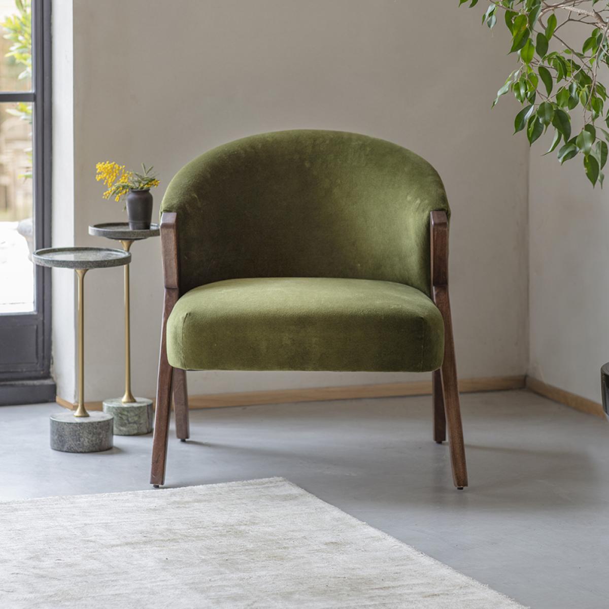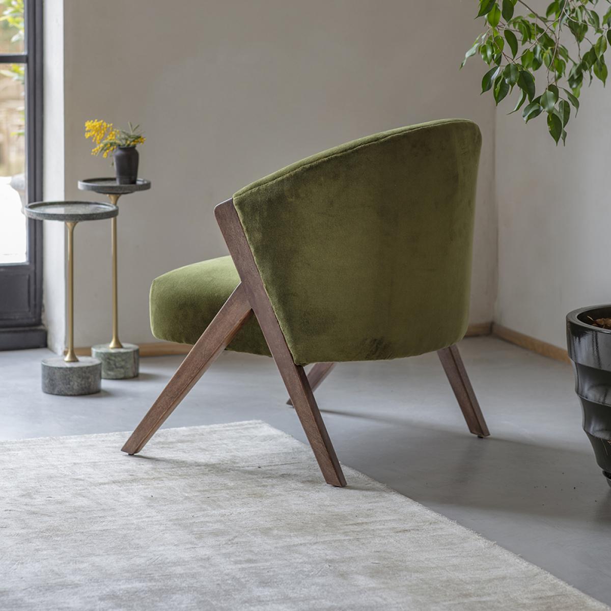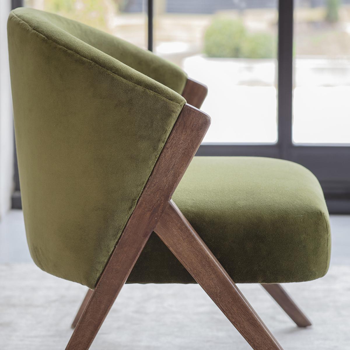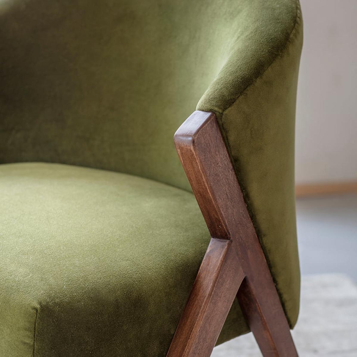 Sit back and relax in our upholstered Scoop Armchair in Deep Green velvet cotton with its mid-century inspired design. This vintage looking upholstered chair is a sophisticated piece making it an ideal accent chair for the living room, dining area, bedroom or open-plan layout. This luxurious green velvet scoop armchair is handcrafted and hand upholstered by our artisans in India and features a unique scooped back for ergonomic comfort and support. The neat proportions include clever leg design detail while the medium-soft seat is upholstered in premium cotton velvet. Its iconic style is also reminiscent of Parisienne furniture boutiques and will enhance any interior design. Matching Scoop Footstool also available.