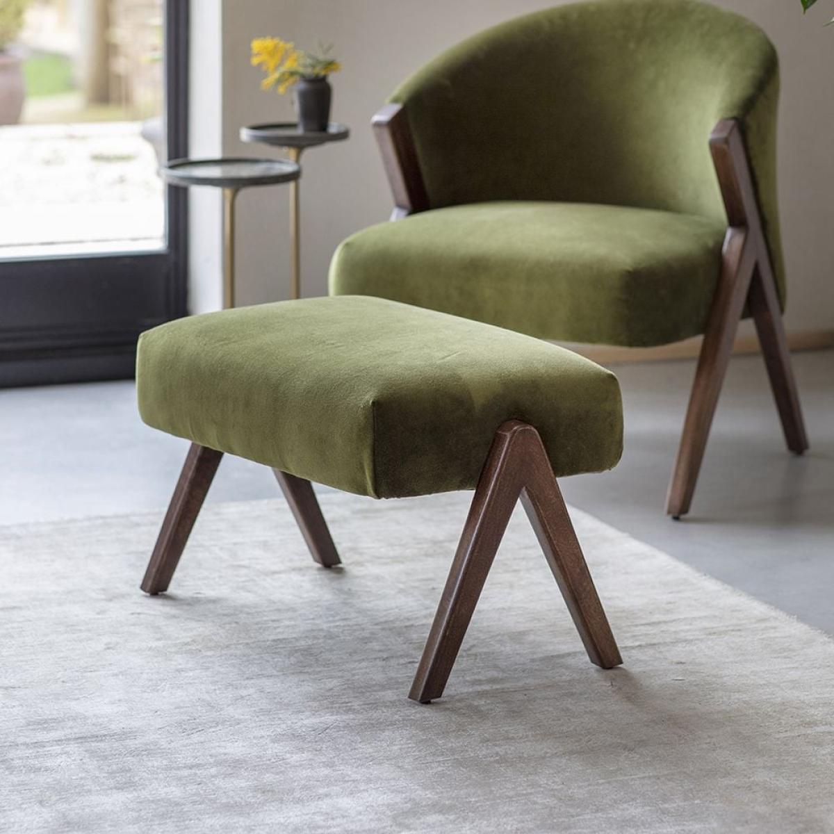 A neat footstool to accompany our Scoop Armchair for a fully relaxing experience, our Scoop Footstool is upholstered in premium cotton velvet in a deep green colourway for a distinctive and luxurious look. Drawing inspiration from Parisienne furniture boutiques, our modern velvet green footstool also features clever leg design detail to mirror the accent chair. Handcrafted and hand upholstered by artisans in India, its mid-century inspired style suits all spaces and it can be drawn up close to an accent chair for a luxurious chaise look and feel. Matching Scoop Armchair is available.