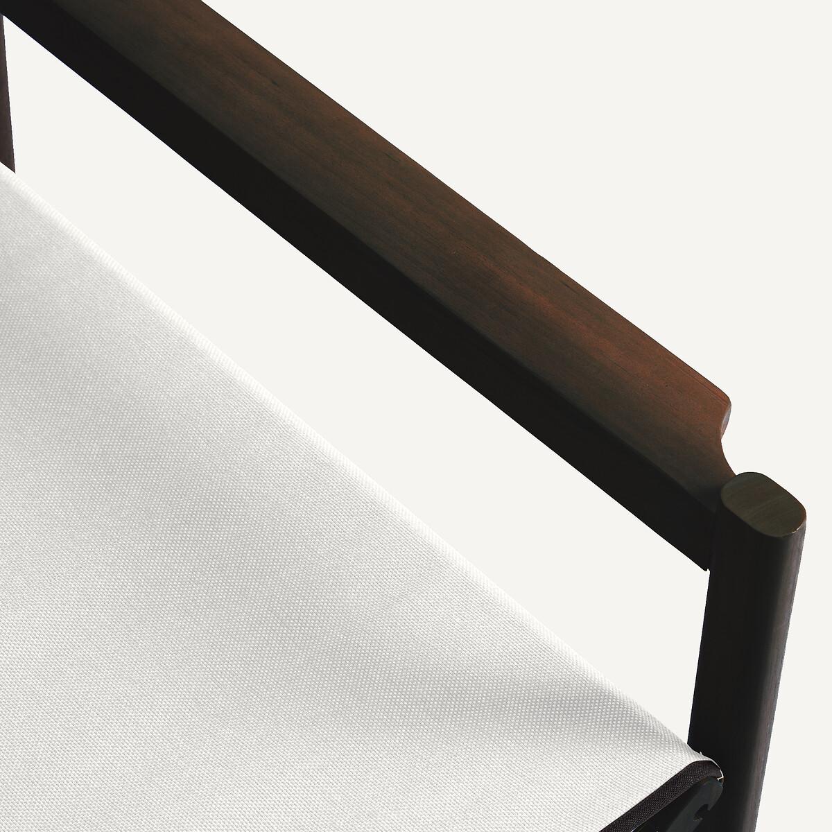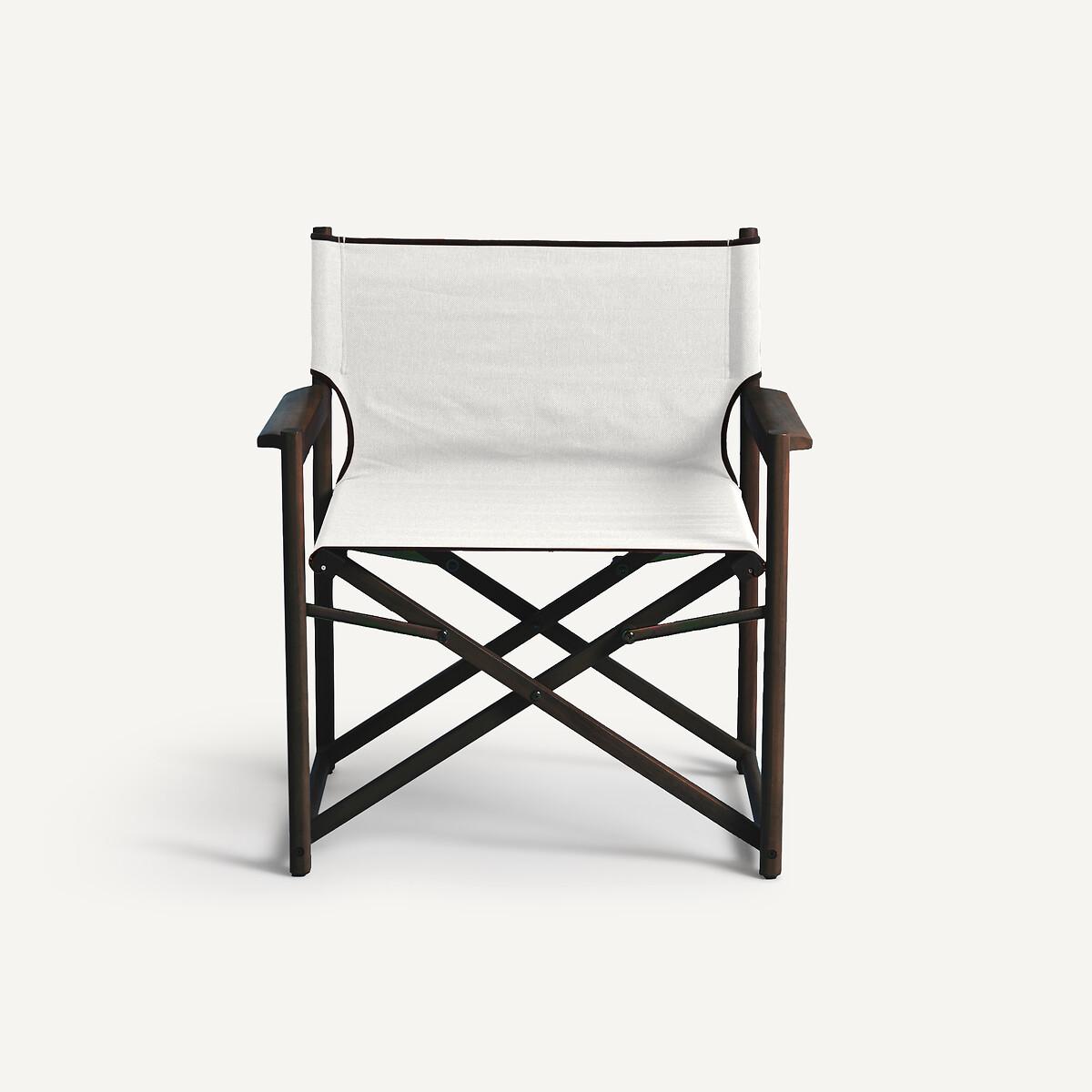 AMPM revisits a classic for outdoor living. This director's chair is available in stained solid acacia, a wood that is naturally suited to the outdoors. Its 100% polyester canvas has been designed to retain all its qualities in the sun, and is trimmed with black braid. The generous dimensions of this chair have been designed with a lounge feel. It folds up, making it easy to transport and practical to store. Product Details • Solid stained acacia wood • FSC® certified wood • 100% polyester, olefin fibre, 230g/m² Quality • Acacia is a wood that offers good mechanical properties (good resistance to insects and fungi) and is resistant to bad weather (alternation of dry and humid periods). • Olefin fibre is OEKO-TEX certified. Olefin is resistant to discolouration from light, stains, mildew and abrasion, making it perfect for outdoor use. Care Advice • Low temperatures are likely to affect the proper functioning and surface condition of your outdoor furniture. • We therefore advise you to store it in a dry, ventilated and closed room.. We strongly advise against the use of a tarpaulin because it will act as an oven and will damage the surface conditions; wood and metal products are particularly concerned. • Before any storage, remember to clean and dry the products well, in order to prevent the appearance of mould or unpleasant odours.. • Whatever the material, it is not advisable to leave furniture outdoors unprotected, particularly during bad weather and winter. Dimensions • Width: 72cm • Height: 79cm • Depth: 65cm • Seat: W67 x H44 x D63 cm • 6kg • Sold pre-assembled. • WOOD FROM SUSTAINABLY MANAGED FORESTS. FSC® certified wood comes from forests that are environmentally, socially and economically well managed. Dimensions and weight of parcel • 1 parcel • W87 x H25 x D73 cm. 12kg