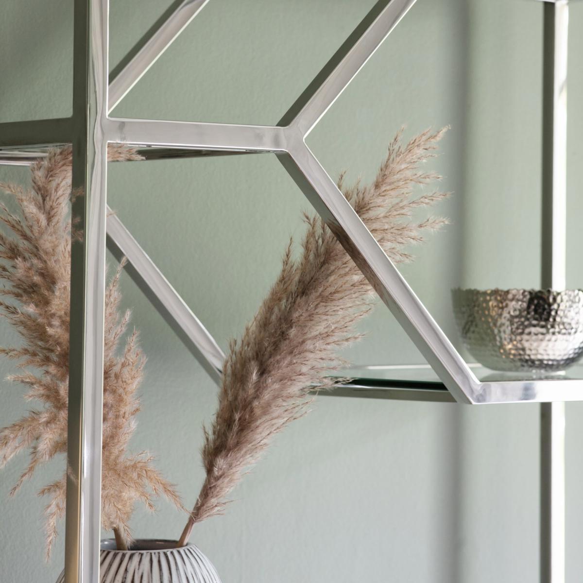 I love this metal display unit for its sleek, minimalistic design-it’s versatile and adds a contemporary edge to any space. It works particularly well in modern or industrial-inspired interiors, but can also bring a chic touch to more eclectic styles. When styling, I suggest using it to showcase a mix of books, decorative objects, or even small indoor plants for visual interest. Keep the colour palette simple and use the metallic finish to contrast with softer textures or colours in the room. It's practical for creating a curated, yet uncluttered look, making it an eye-catching focal point in a living room, hallway, or even a stylish home office.