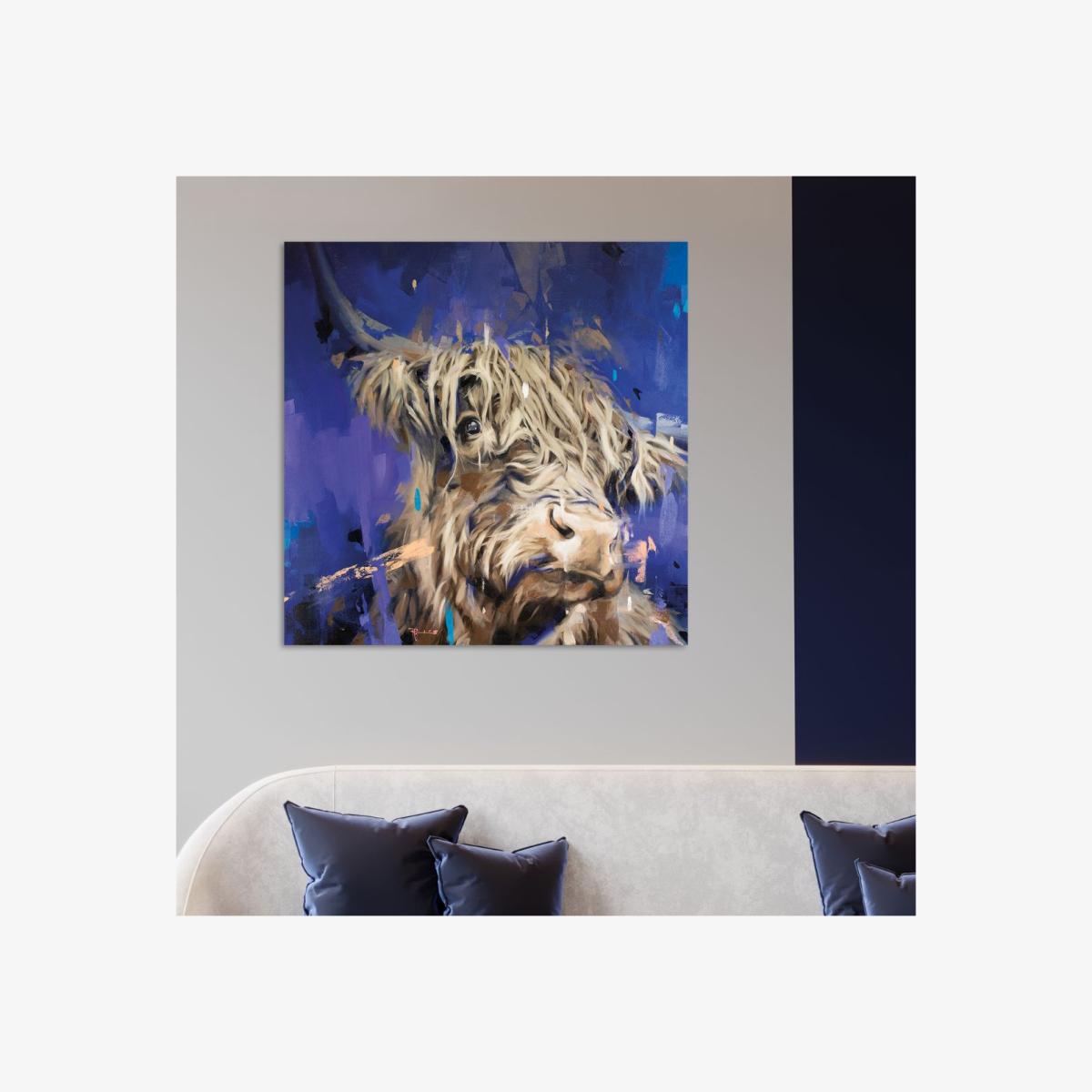 This captivating artwork features a stunning highland cow set against a backdrop of abstract elements that evoke the rugged landscapes and rich heritage of Scotland. Artist Frank Pretorius skillfully captures the essence of the highland cow, with its majestic presence and iconic charm, making it the focal point of the composition. If you want to add a pop of colour to your interior, is ready to hang and become a striking centerpiece in your home decor. Whether displayed in your living room, bedroom or hallway, this artwork adds a touch of Scottish flair and artistic sophistication to any space. This captivating artwork features a stunning highland cow set against a backdrop of abstract elements that evoke the rugged landscapes and rich heritage of Scotland. Artist Frank Pretorius skillfully captures the essence of the highland cow, with its majestic presence and iconic charm, making it the focal point of the composition. If you want to add a pop of colour to your interior, is ready to hang and become a striking centerpiece in your home decor. Whether displayed in your living room, bedroom or hallway, this artwork adds a touch of Scottish flair and artistic sophistication to any space.