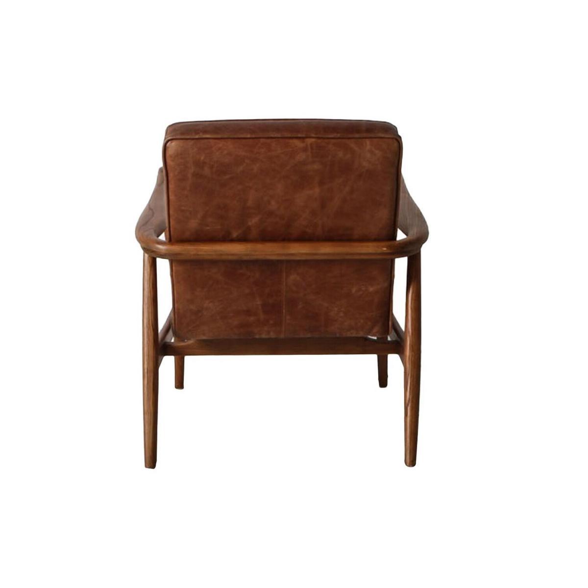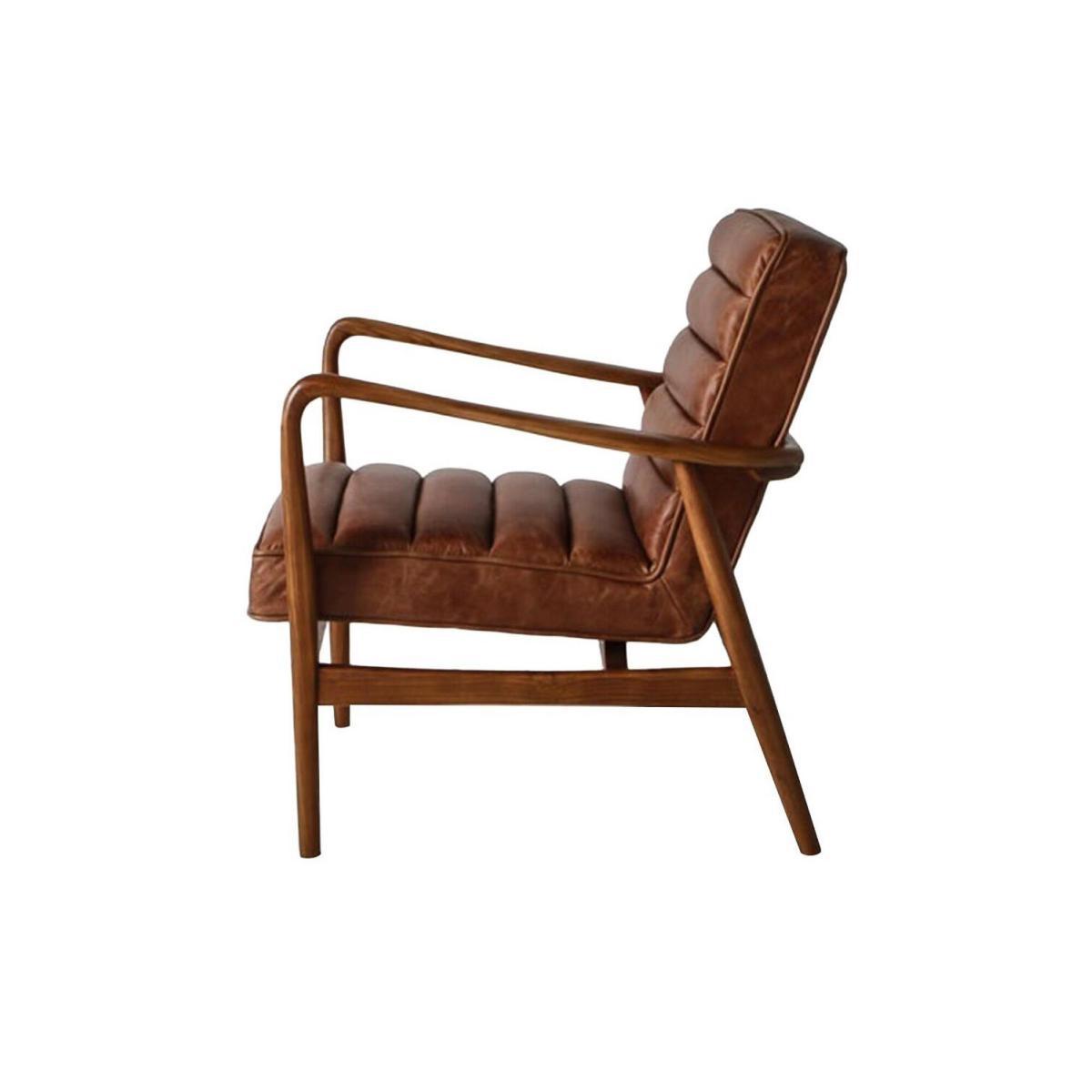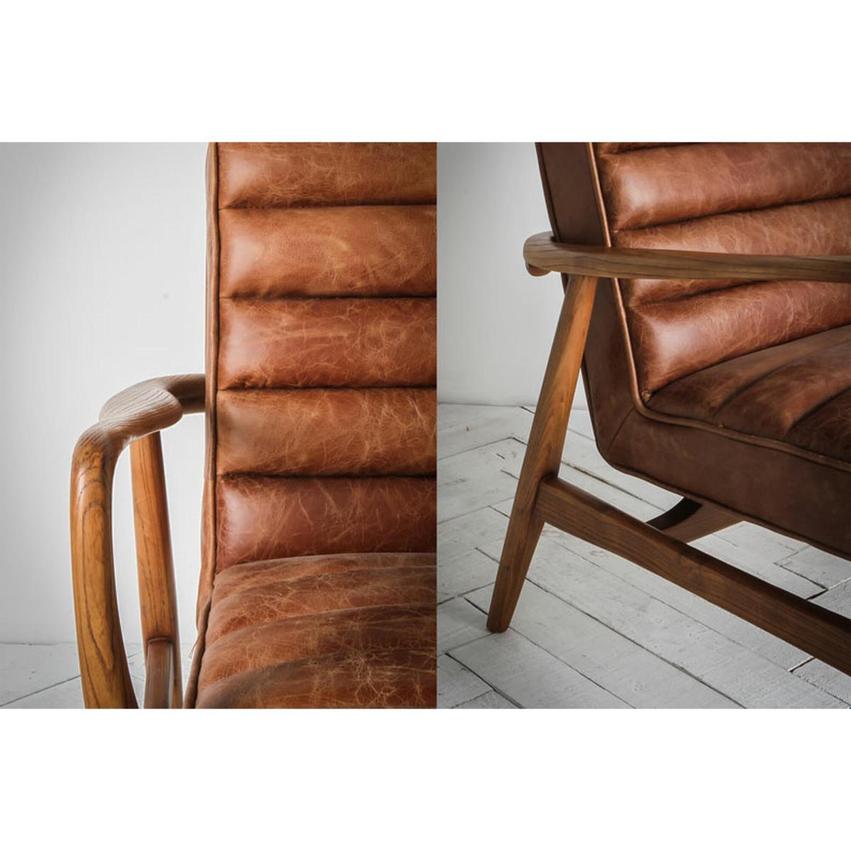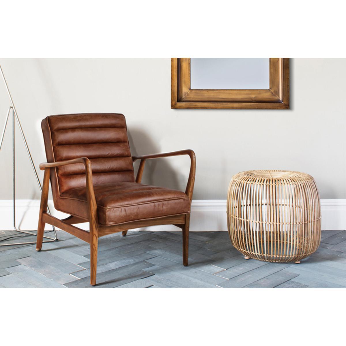 I’m a fan of this cognac leather chair for its warm tone and sleek wooden frame - it works equally well in mid-century, Scandi or industrial schemes. The leather will age beautifully, adding depth over time. To style, place it on a light wool rug alongside a slim metal side table and add a neutral linen cushion or a sheepskin drape for a cosy contrast. Pair with matte-black lighting or a low timber coffee table to balance the rich caramel hue.