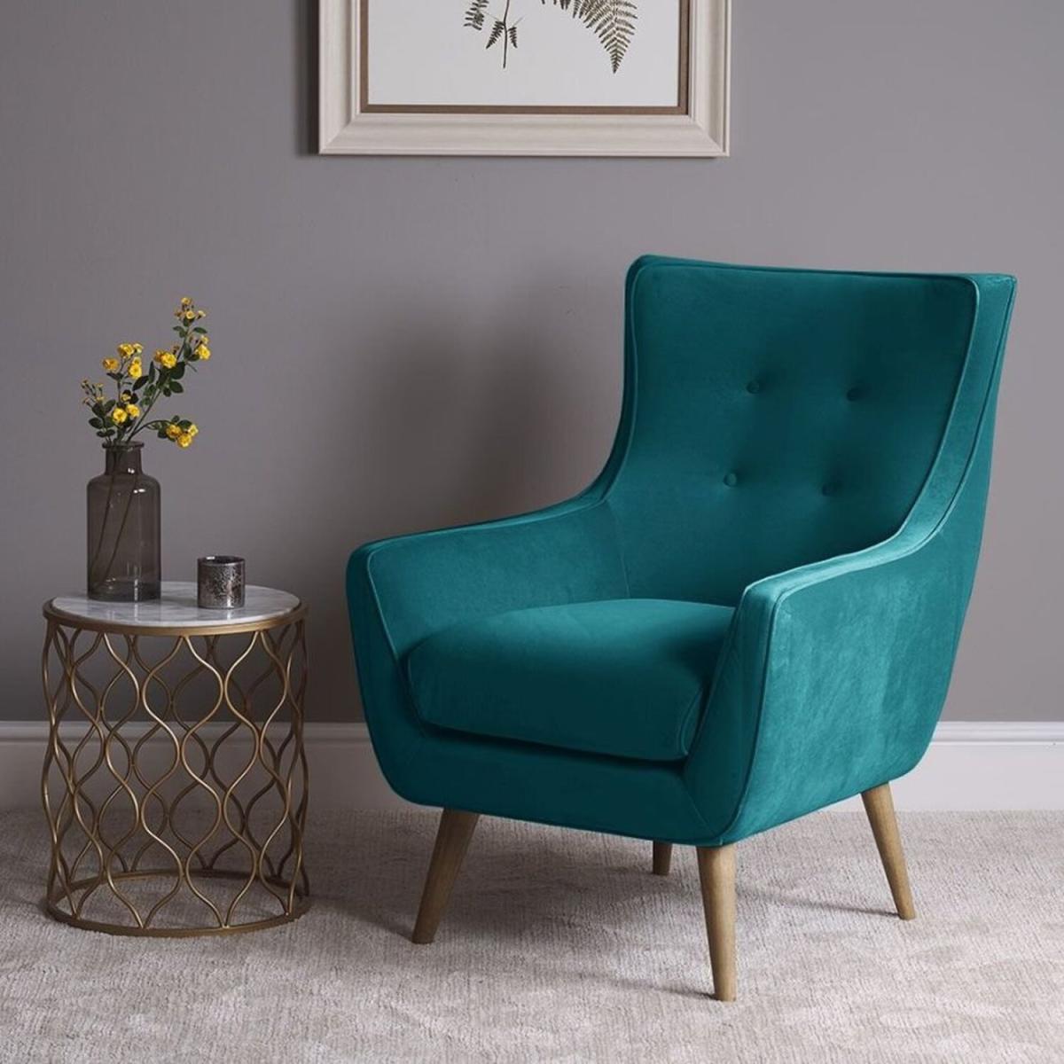 I love this teal armchair for its bold colour and clean, modern silhouette. It works particularly well in both contemporary and eclectic interiors, adding a pop of colour without overwhelming the space. Its compact size makes it versatile for smaller living rooms, reading nooks, or even a bedroom corner. For styling tips, consider layering with textured throws or cushions in contrasting shades like mustard or blush to add depth. It also pairs beautifully with natural wood tones and muted palettes, making it a flexible statement piece. Practical tip: position it near a good reading lamp or beside a small side table to create a cosy, functional spot for relaxation.