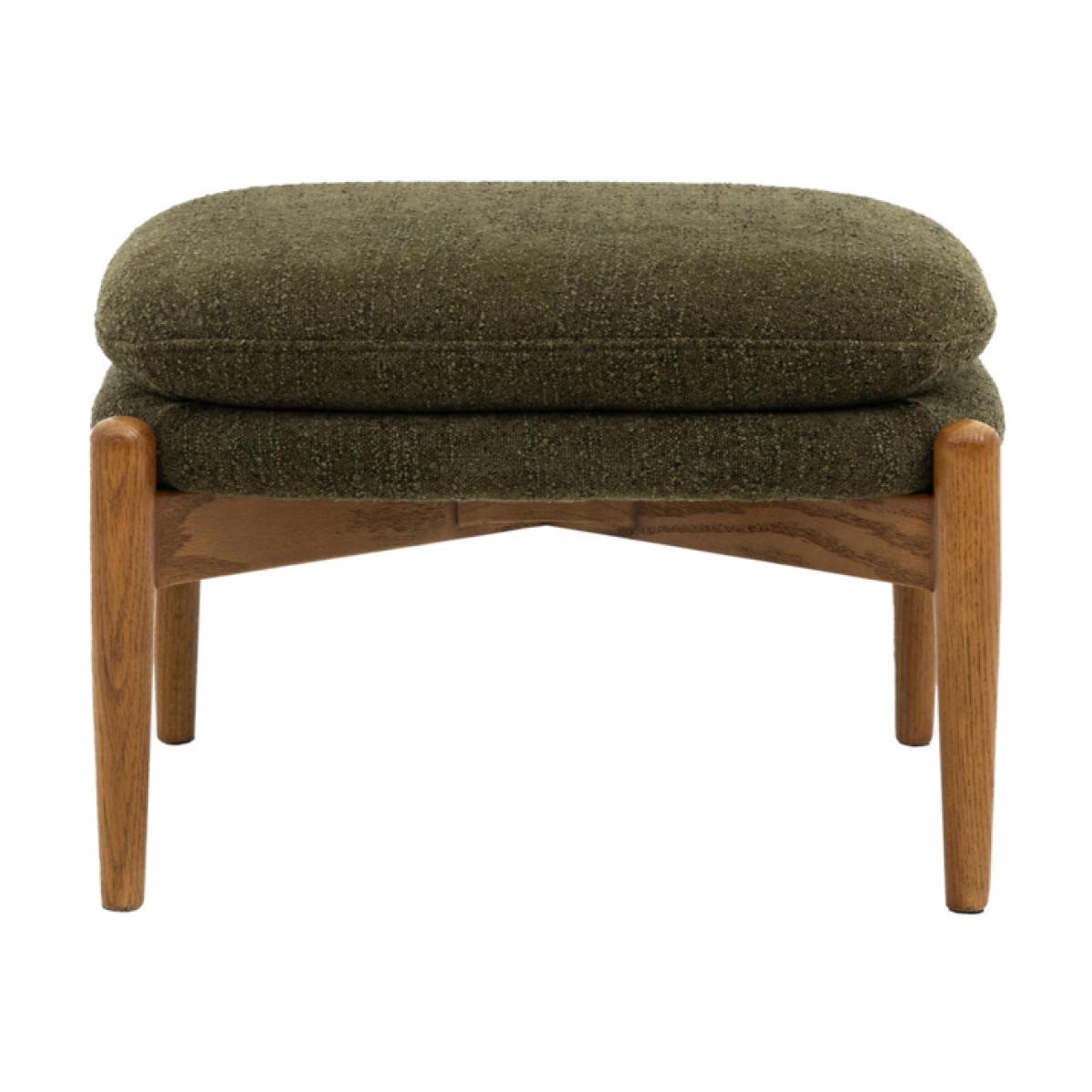 I love this footstool for its versatile nature and timeless appeal. The green boucle fabric adds texture and a touch of colour, making it an effortless way to introduce some visual interest into a living space. It works particularly well in mid-century, Scandinavian, or modern interiors, where its clean lines and natural wooden legs complement a minimalist aesthetic. For styling tips, consider pairing it with a cosy sofa or armchair for extra comfort, or use it as a standalone statement piece in a reading nook. Its practical size also makes it ideal for small spaces or apartment living, where functionality is key without sacrificing style.
