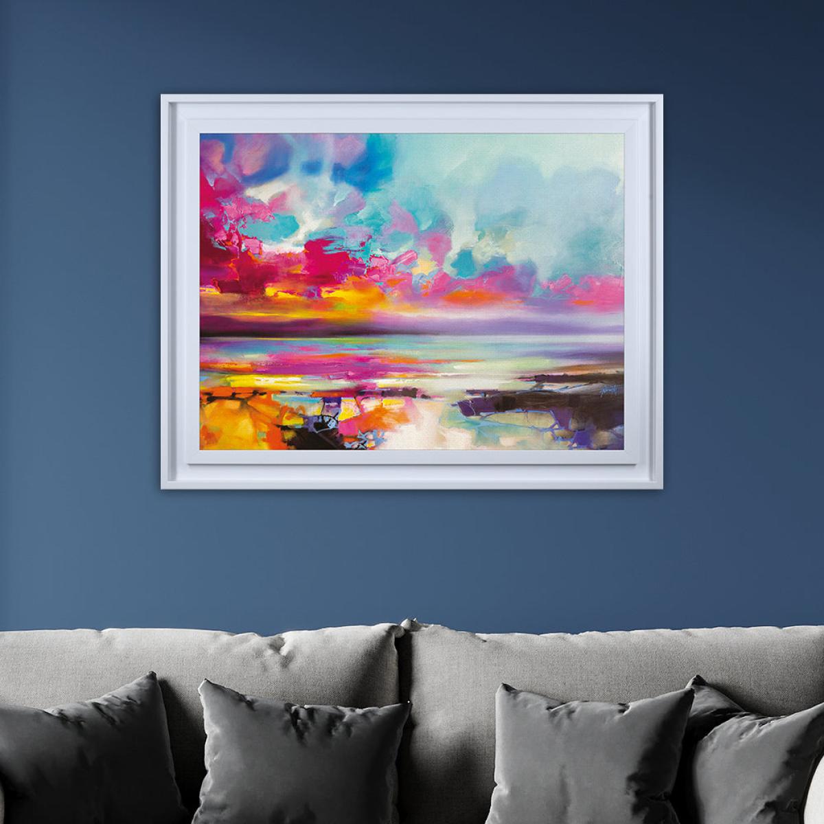 I love the Scott Naismith Da Capo Magenta print for its vibrant energy and contemporary appeal. Its bold colours and abstract style make it an excellent statement piece, particularly in modern or eclectic interiors. It works well above a sofa or in a spacious hallway where it can really draw the eye. For styling, consider pairing it with minimalist or neutral furnishings to let the artwork shine, or add in matching accent cushions or vases for a cohesive look. Its sizeable 60 x 80 frame makes it ideal for larger walls, where it can anchor a colour scheme or serve as a focal point in a living room or master bedroom.