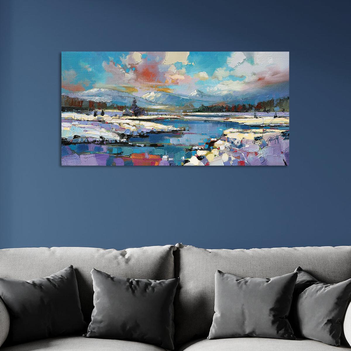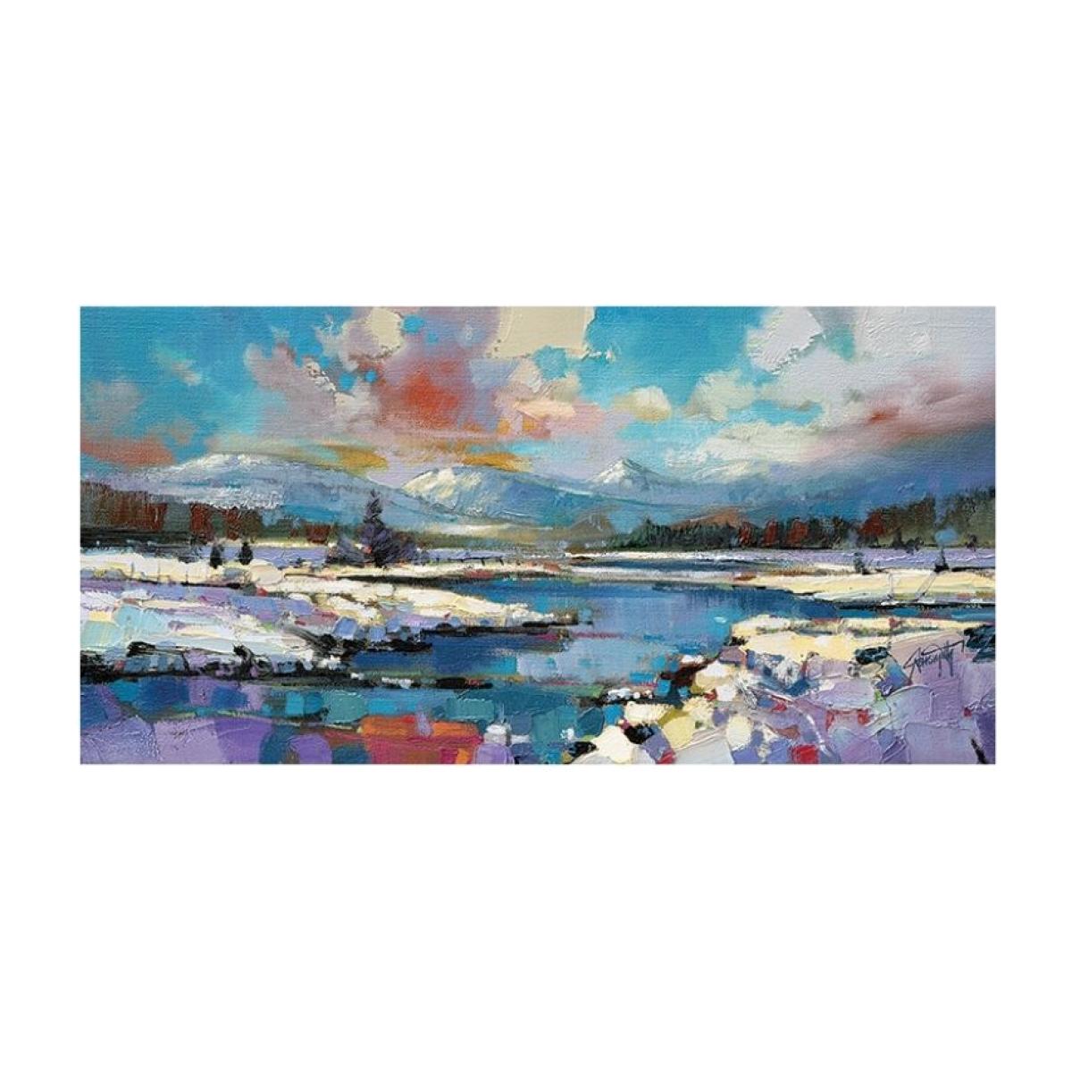 Experience the beauty of nature in its finest form with Scott Naismith's (Glen Spean Snow) breathtaking landscape painting. The exquisite details and intricate brushwork will transport you to the scenic Highlands, while the vibrant colors and marvellous atmosphere will awaken all your senses. The modern take on an iconic landscape will bring a touch of luxury to any art collection.