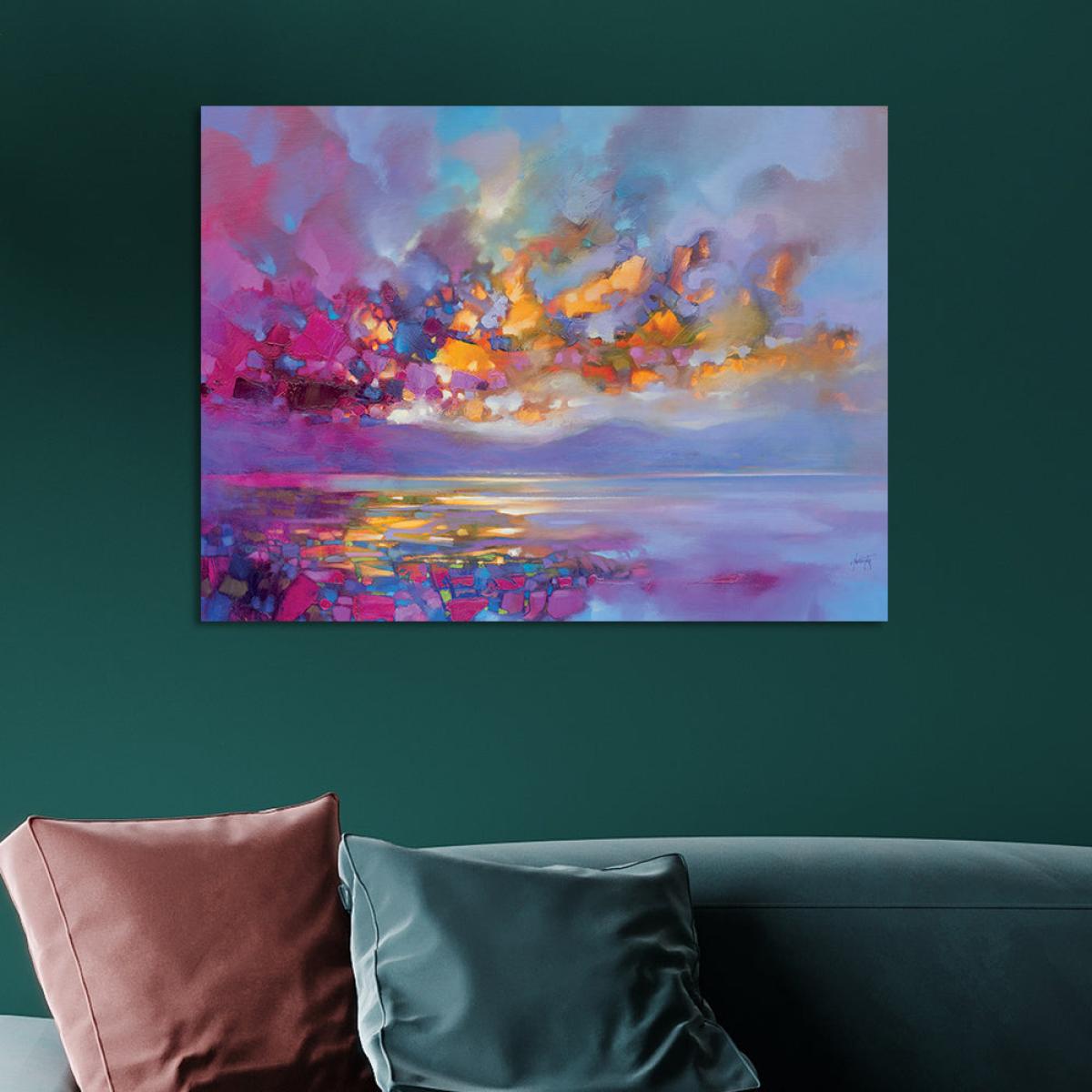 I love this magenta refraction canvas for its bold use of colour and dynamic composition, making it a real statement piece. It works exceptionally well in contemporary interiors or neutral spaces that need a splash of vibrancy, especially in living rooms, bedrooms, or even hallways. When styling, consider pairing it with understated furniture to let the artwork stand out, or incorporate complementary colour accents in cushions or accessories for a cohesive look. Its sizeable format also makes it ideal above a sofa or sideboard, creating a focal point that brings energy and colour to the room without overwhelming the space.