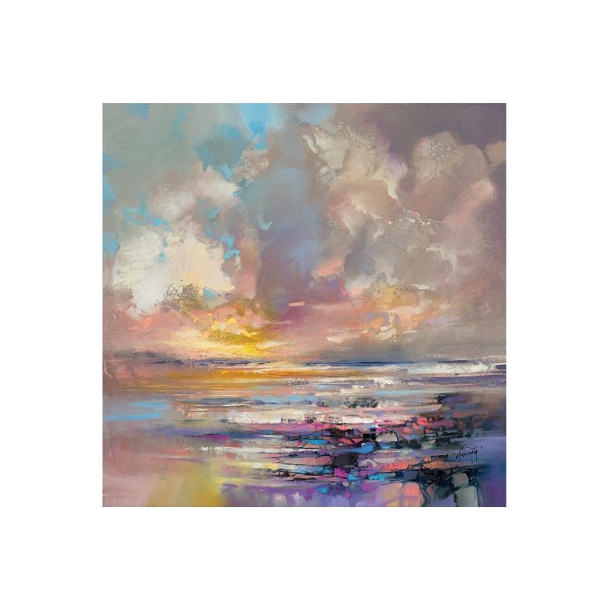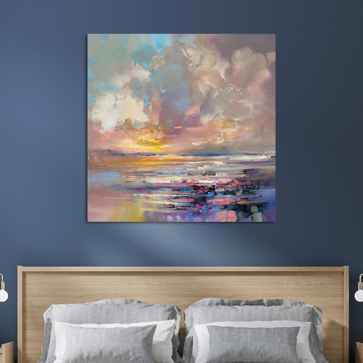 I love the Scott Naismith Radiant Energy canvas for its vibrant yet calming colour palette, making it perfect for adding a focal point to living rooms or bedrooms. Its sizable 85 x 85cm format really lends itself to larger wall spaces, where it can make a bold statement. This piece works well in contemporary or coastal interiors, especially paired with neutral furnishings to let the artwork stand out. Practical styling tips include hanging it at eye level with a simple frame to keep the focus on the art, and combining it with other soft textures or metallic accents to create a balanced and inviting space. This artwork is versatile enough to elevate both minimalist and more layered interiors, giving them a sophisticated edge.