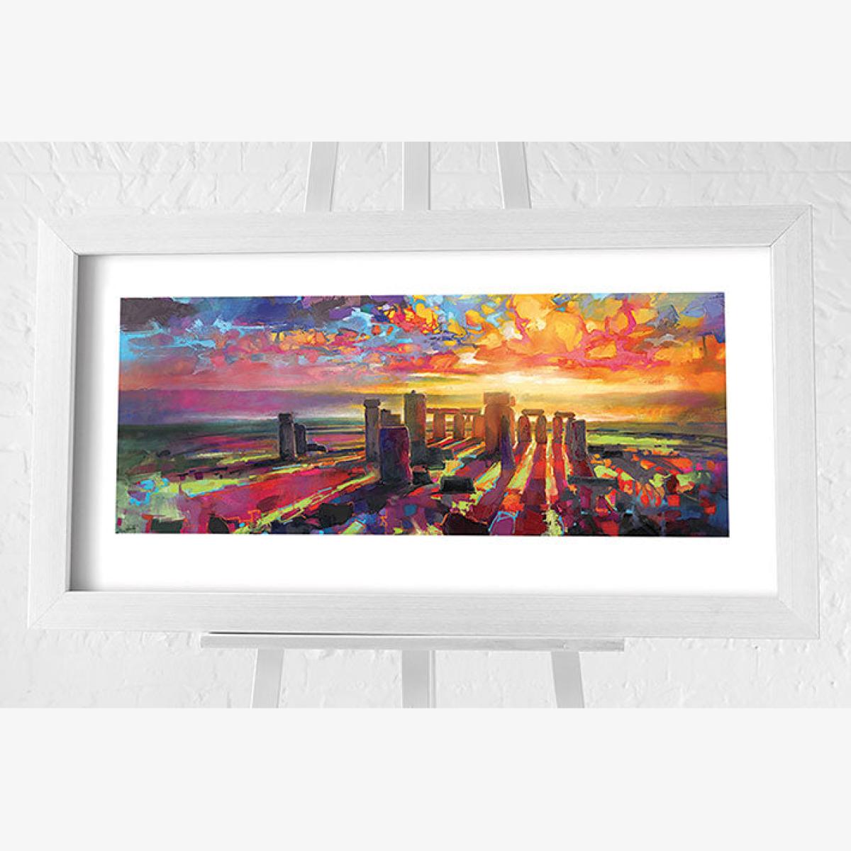 I love the Scott Naismith Stonehenge Equino for its bold, vibrant colours and striking landscape scene, which can serve as a focal point in any room. Its sizeable, elongated format works particularly well above a sofa or in a large hallway, where it can make an impact. This artwork pairs beautifully with minimalist interiors, adding a splash of colour and texture, but it can also complement more eclectic schemes if you want to introduce an energetic visual element. When styling with this piece, consider balancing its vibrant tones with neutral furnishings, or pick out a few colours from the painting for accessories to create a cohesive look. Its dimensions and vivid hues make it an excellent choice for creating visual interest in contemporary or modern interiors.