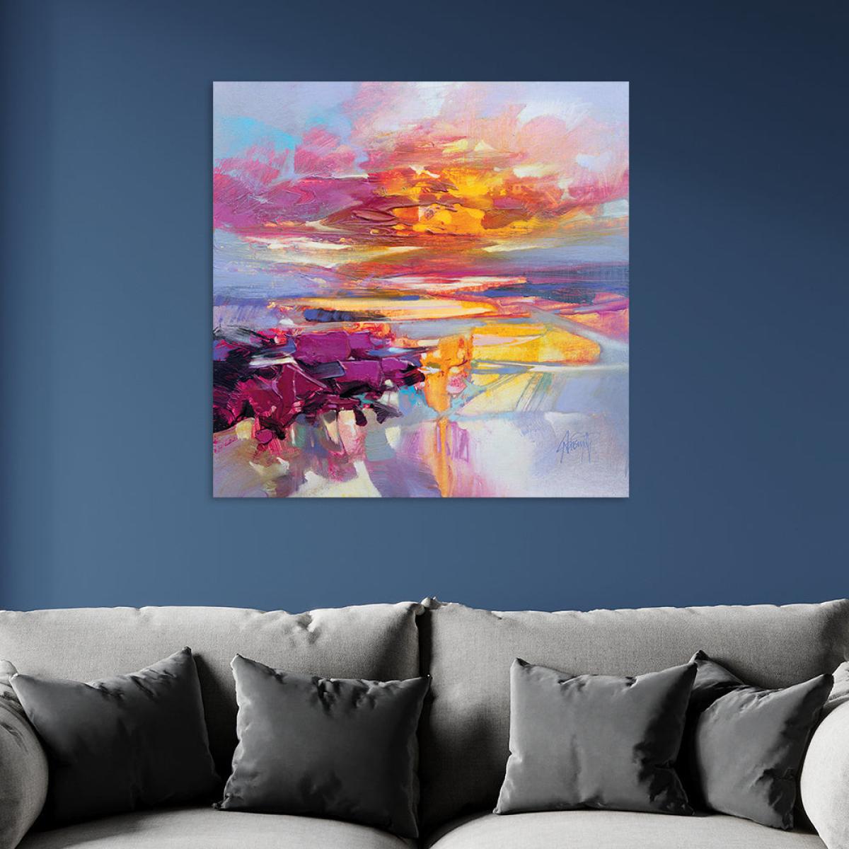 The Scott Naismith Uist Causeways 2 Canvas adds a vibrant, contemporary touch to any space. I love its bold colour palette and abstract style, which makes it an ideal statement piece for modern or pared-back interiors. It works particularly well in living rooms or bedrooms with neutral tones, providing a pop of colour that energises the room. For styling tips, try pairing it with minimalist furniture and metallic accents to let the artwork stand out, or complement it with other colour-matched accessories for harmony. Its 85 x 85 size makes it versatile for over sofas or beds, adding visual interest without overwhelming the space.
