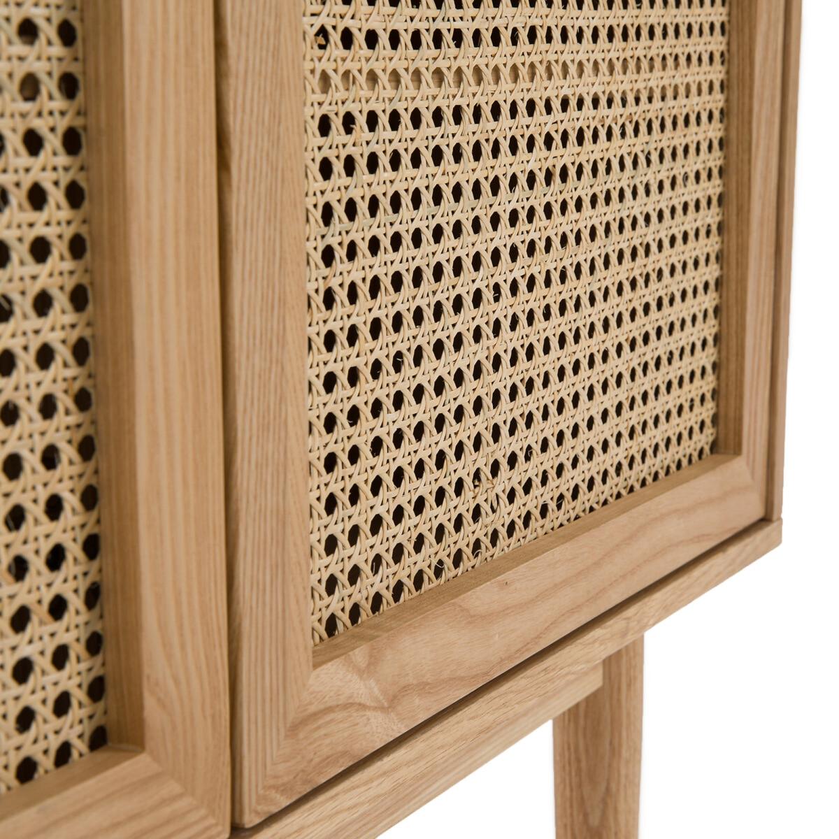 Structure and legs in solid ash, with cane doors for a natural sideboard that goes well with a contemporary or bohemian atmosphere. Beautiful and functional.