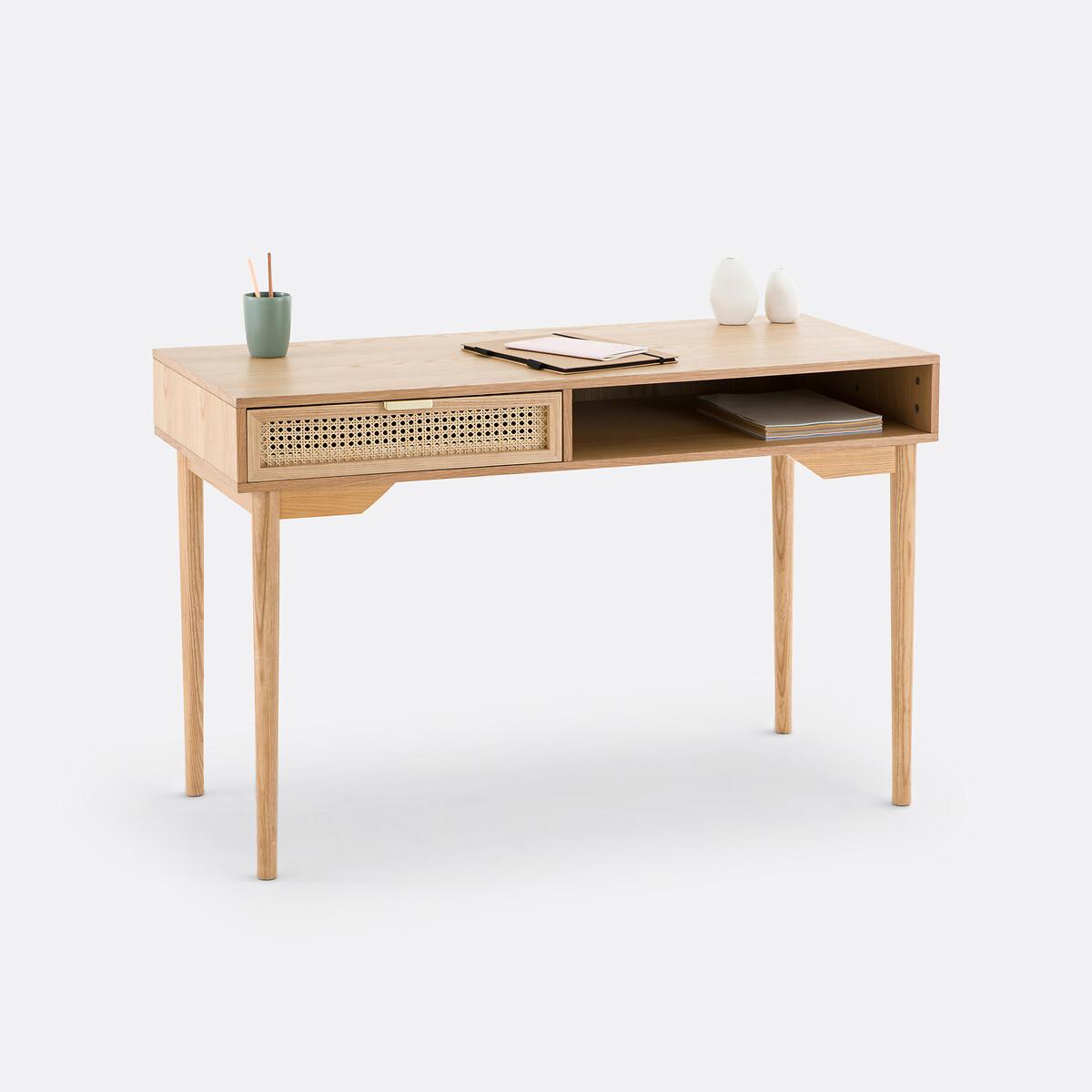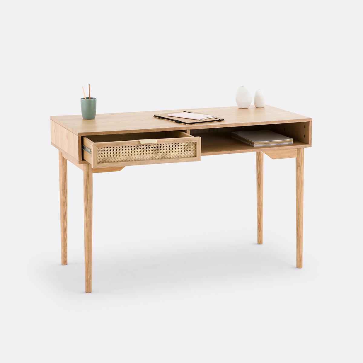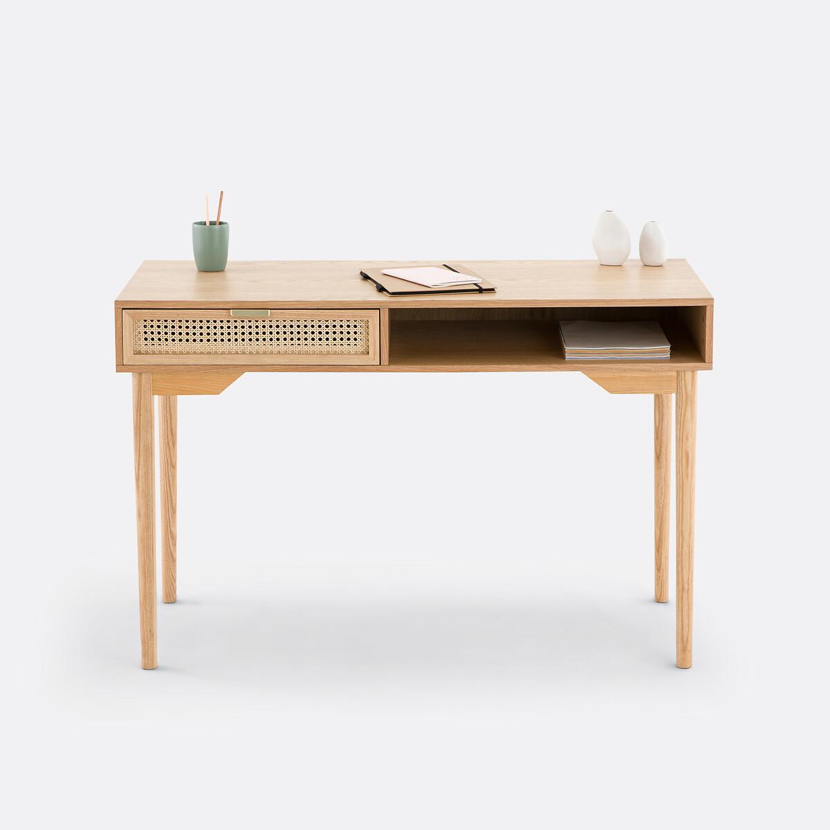This desk takes its inspiration from Scandinavian design, with clean lines and its cane drawer, which combines design and practicality.
