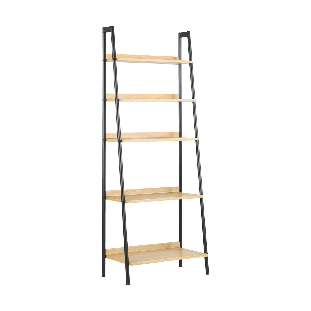Scout Oak 5 Shelf Bookcase With Black Frame, Oak