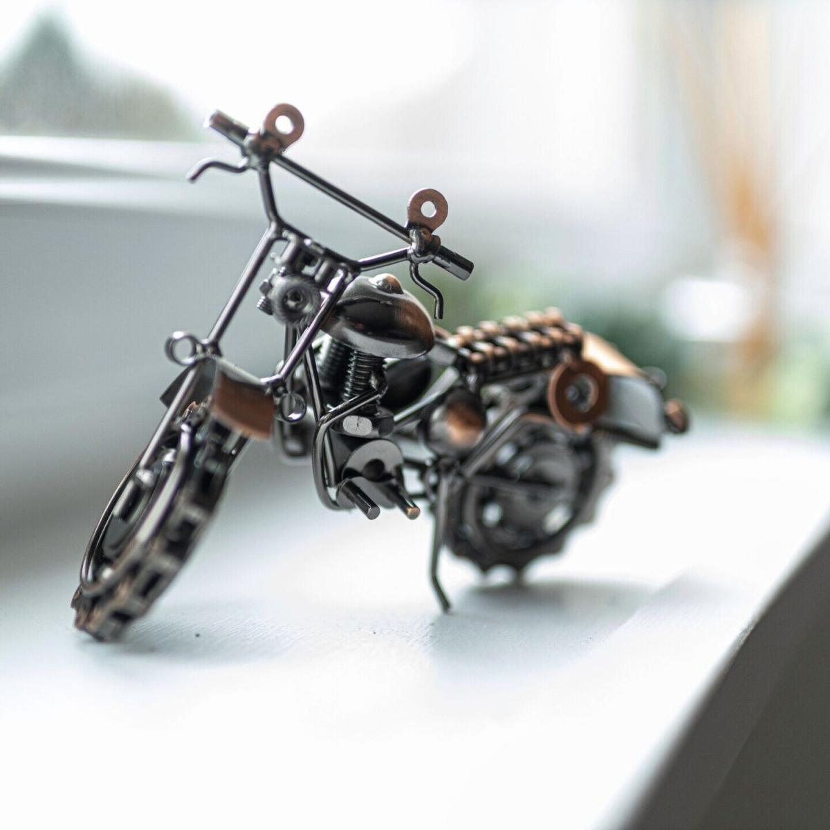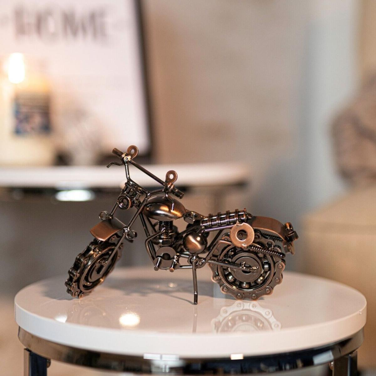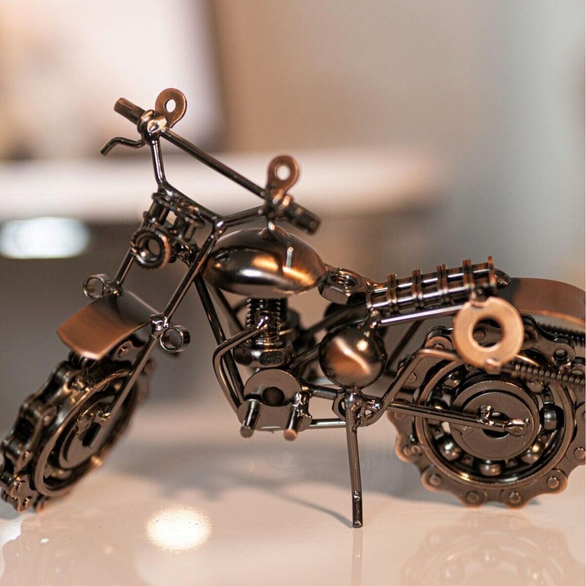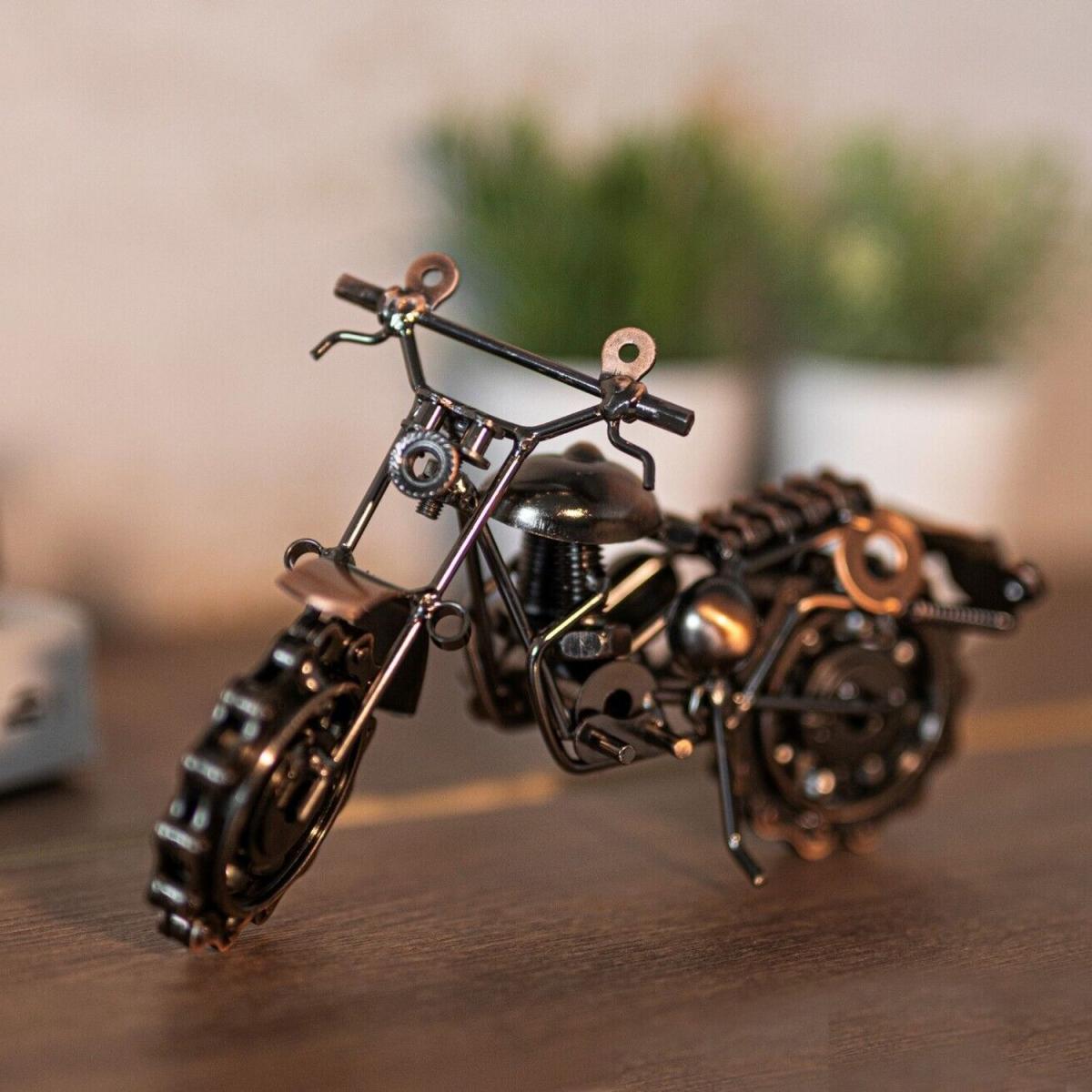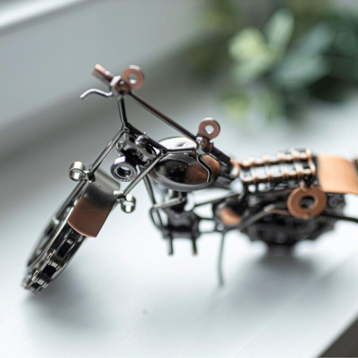 These fantastic sculptures are carefully and complicatedly made from metal with a bronze/copper finish. All wheels are moveable and each sculpture is finished in high detail. These are perfect for anyone who loves cars and bikes. 100% handcrafted, brand new and will last for a long time due to the plating process involved in creation. Each of our vehicles are made from reused pieces of metal and nuts and bolts making each one unique. These novelty metal vehicles would make a great gift for the man in your life or any petrol head. These stunning desk sculptures are made from metal and are finished in a vintage bronze effect.