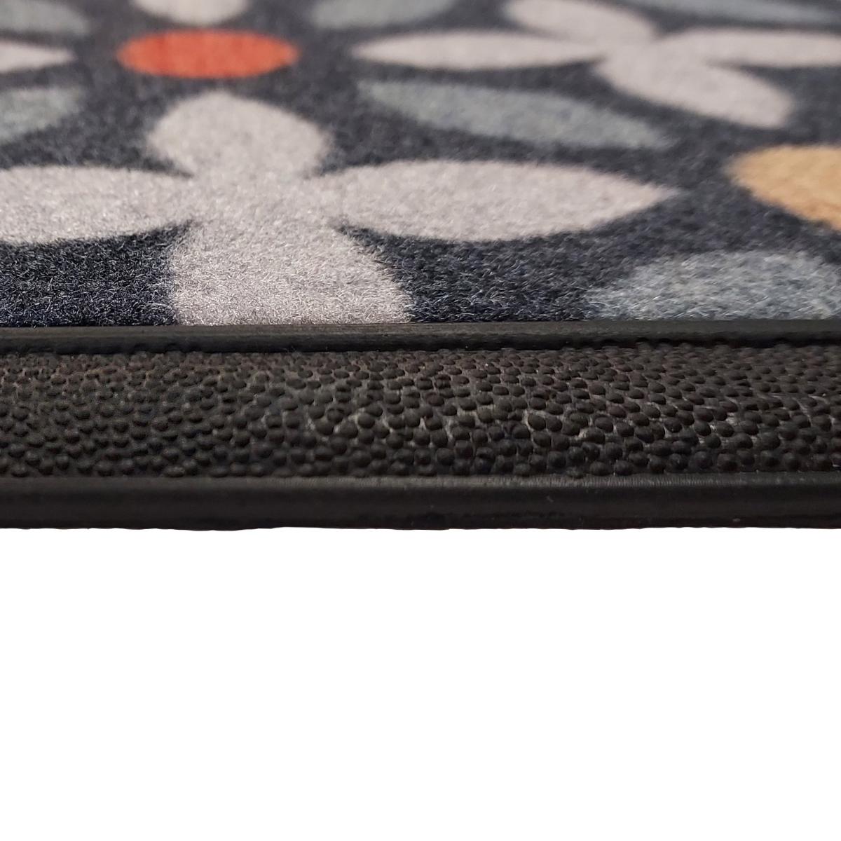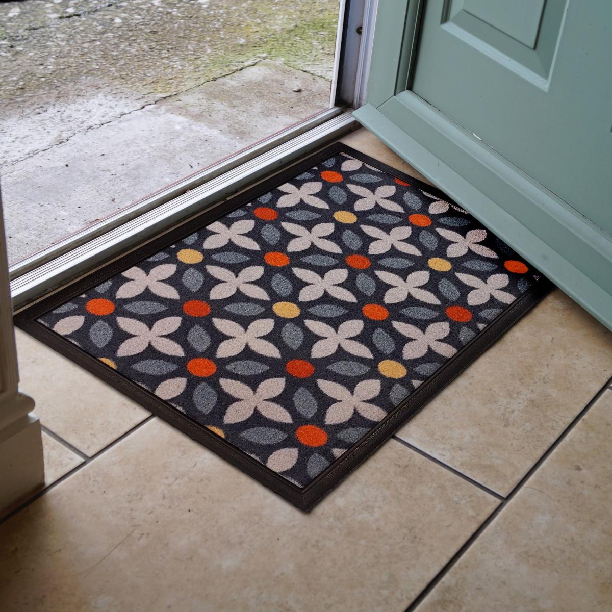 * Anti-slip backing* Suitable for outdoor use* Traditional floral design Scrapes the dirt and absorbs the moisture, this floral geometric doormat is ideal for any home. It can be placed inside or outside under shelter and the recycled nylon pile quickly absorbs excess moisture and dirt and helps prevent it from entering your home. The pile is also fade resistant to will stay looking newer for longer and the durable rubber base helps to keep the mat in place.**Please note:**Moisture, sunlight, heat and cleaning products may cause discolouration to your flooring therefore we recommend that you check with your flooring manufacturer for the suitability of using rubber backed mats in your home. We also recommend regularly lifting mats to allow the floor underneath to be cleaned and aired and not using on light coloured and vinyl flooring.