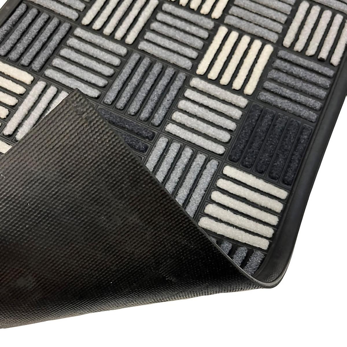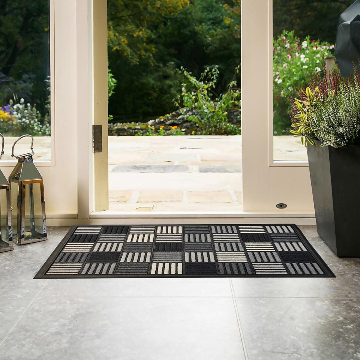 This indoor/outdoor doormat is perfect for any home. The heavy duty rubber base aids stability and keeps the mat flat whilst the nylon pile absorbs any excess moisture preventing it from entering the home. The pile is crush resistant so it will not go flat and its also UV stable so will not fade in sunlight. It's the mat that looks brand new day after day.