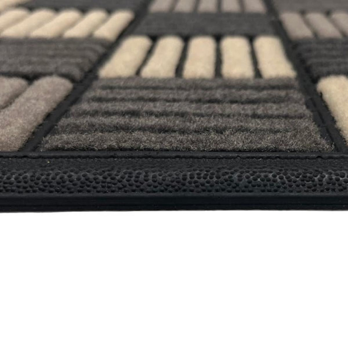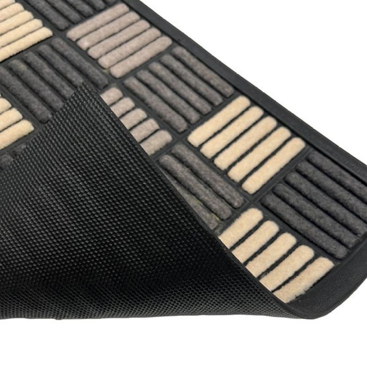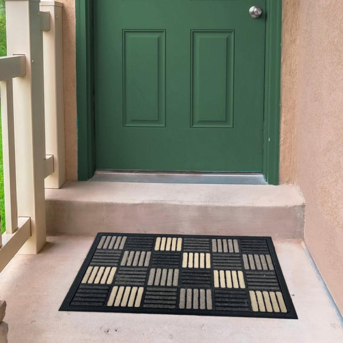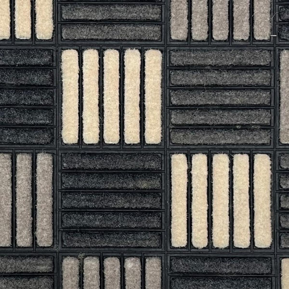 * Anti-slip backing * Suitable for outdoor use * Traditional striped in squares design Scrapes the dirt and absorbs the moisture, this square and striped doormat is ideal for any home. It can be placed inside or outside under shelter and the recycled nylon pile quickly absorbs excess moisture and dirt and helps prevent it from entering your home. The pile is also fade resistant to will stay looking newer for longer and the durable rubber base helps to keep the mat in place.**Please note:**Moisture, sunlight, heat and cleaning products may cause discolouration to your flooring therefore we recommend that you check with your flooring manufacturer for the suitability of using rubber backed mats in your home. We also recommend regularly lifting mats to allow the floor underneath to be cleaned and aired and not using on light coloured and vinyl flooring.