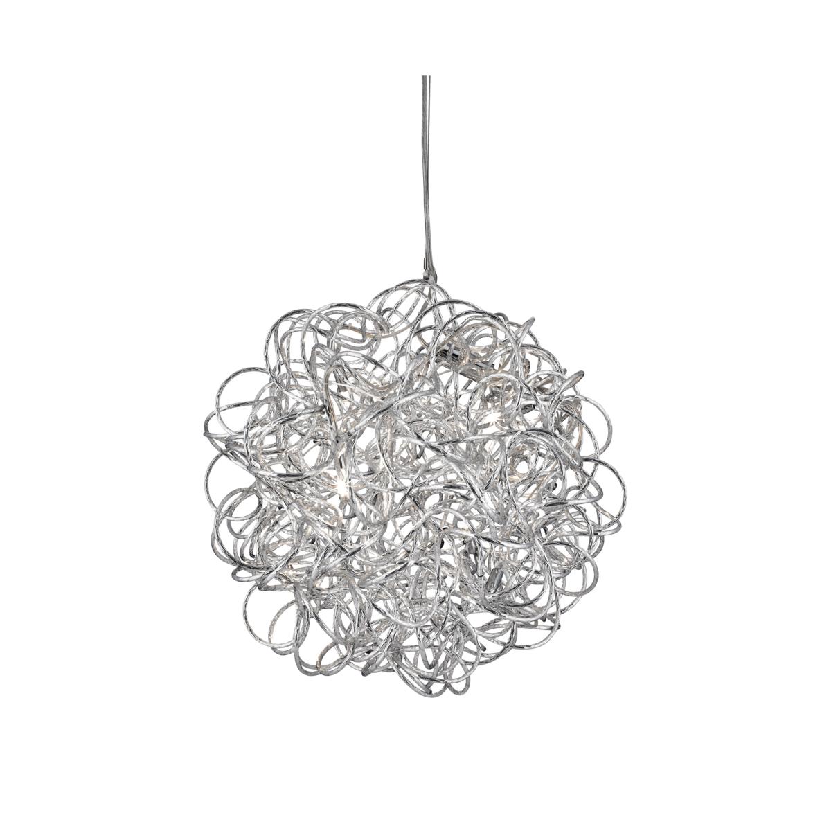 This Scribble chrome 6 light pendant with diamond cut tangled aluminium makes an interesting feature for any room. The organised chaos of the tangled aluminium looks fabulous, and draws the eye from any corner of the room. And the six miniature light fittings twinkle from within, making the twisted metal sparkle and shine.